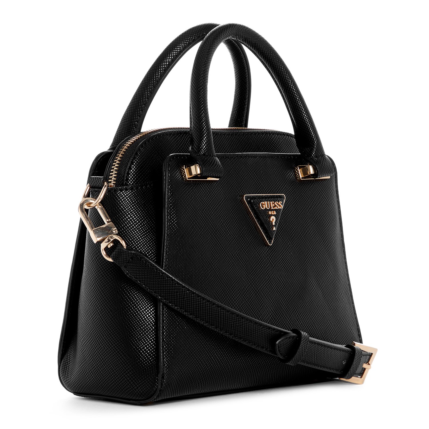 Guess Women's Solid Black Polyurethane Avis Small Satchel Bag