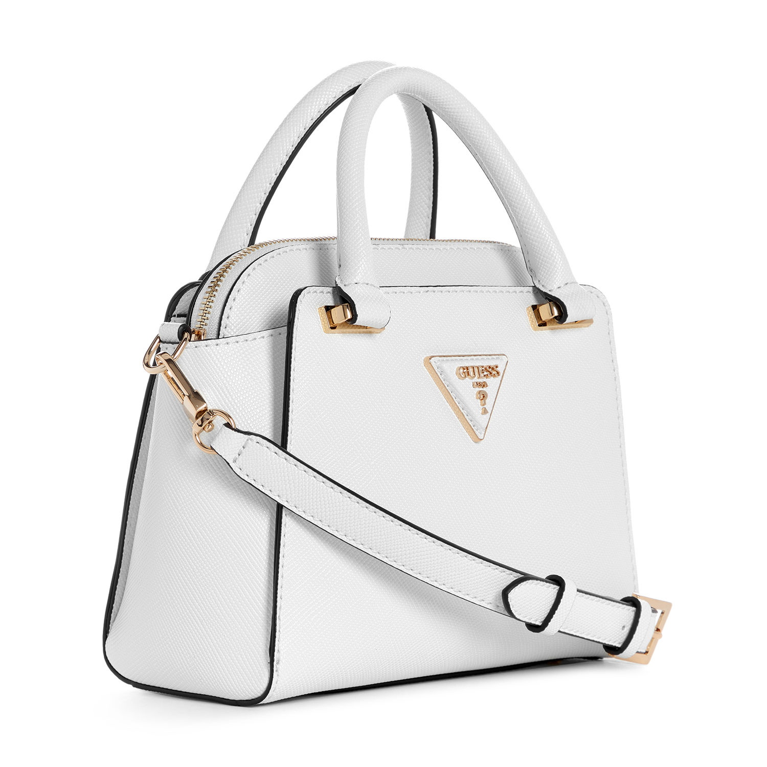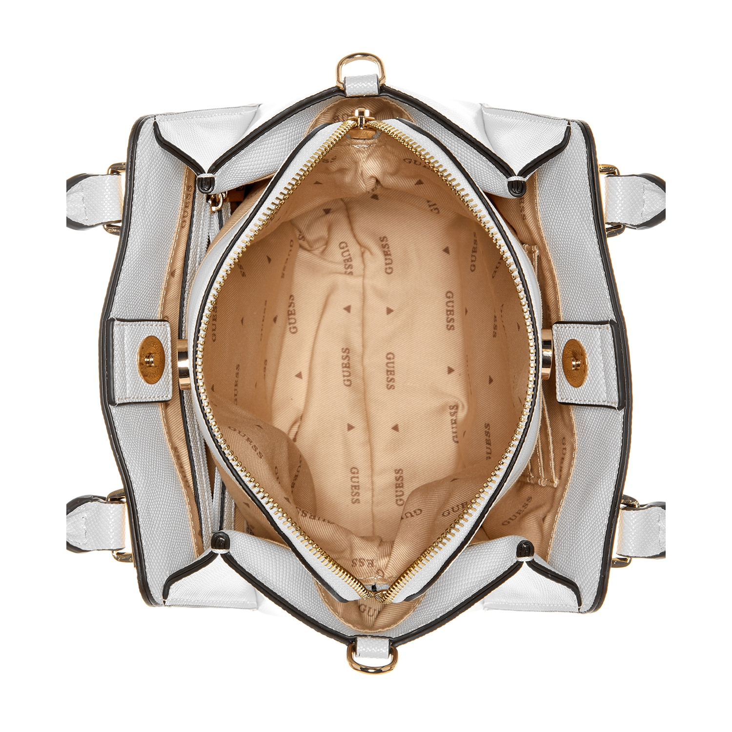 Guess Women's Solid White Polyurethane Avis Small Satchel Bag
