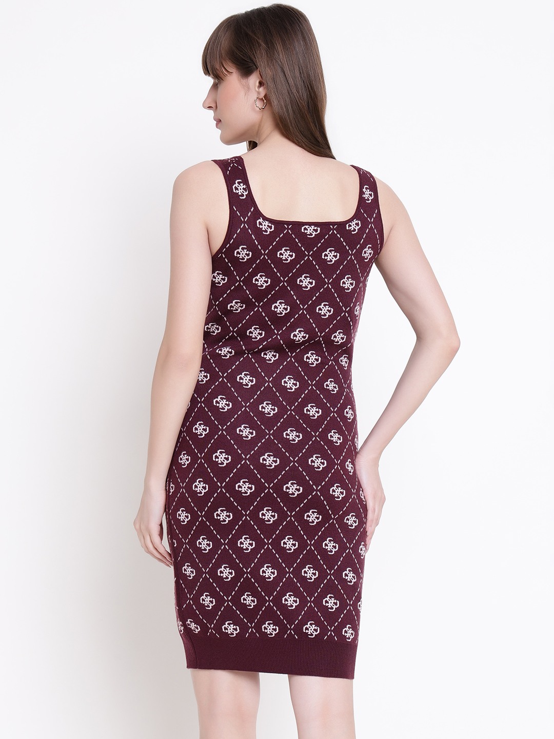 The sarah stella yarn sheath dress in maroon offers a regular fit with a stylish self-design pattern. Crafted from comfortable polyester fabric, it features a sleeveless design and a square neckline that adds a modern touch. Perfect for various occasions, this dress is easy to wear with its pull-on closure. Its elegant yet simple style makes it a versatile addition to any wardrobe. Whether for casual outings or semi-formal events, the sarah stella dress combines comfort and sophistication effortlessly.