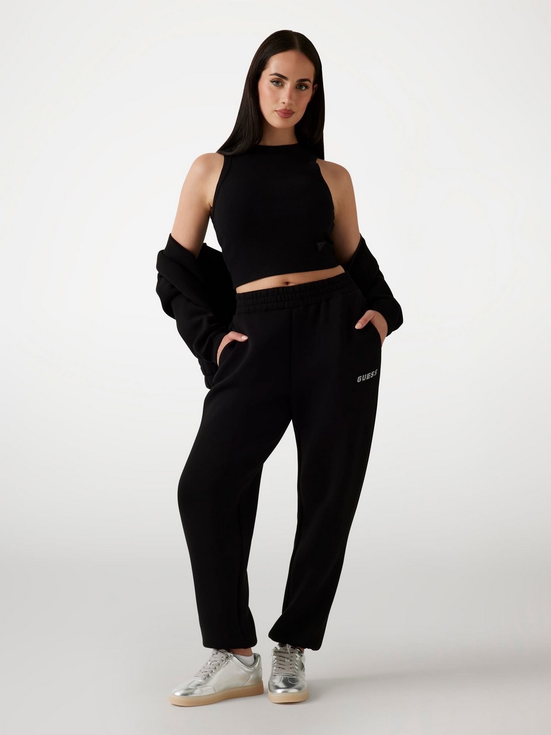 Discover the perfect blend of comfort and style with our black joggers for women. Crafted from a soft viscose blend fabric, these joggers offer a luxurious feel against your skin. The solid pattern provides a sleek and versatile look, making them ideal for any casual outing or relaxed day at home. Featuring a high-rise design, they offer a flattering fit that complements your silhouette. The elasticated waist closure ensures a snug yet comfortable fit, allowing for easy movement throughout your day. Whether paired with a casual tee or a cozy sweater, these joggers are a must-have addition to your wardrobe. Embrace effortless style and comfort with every wear.