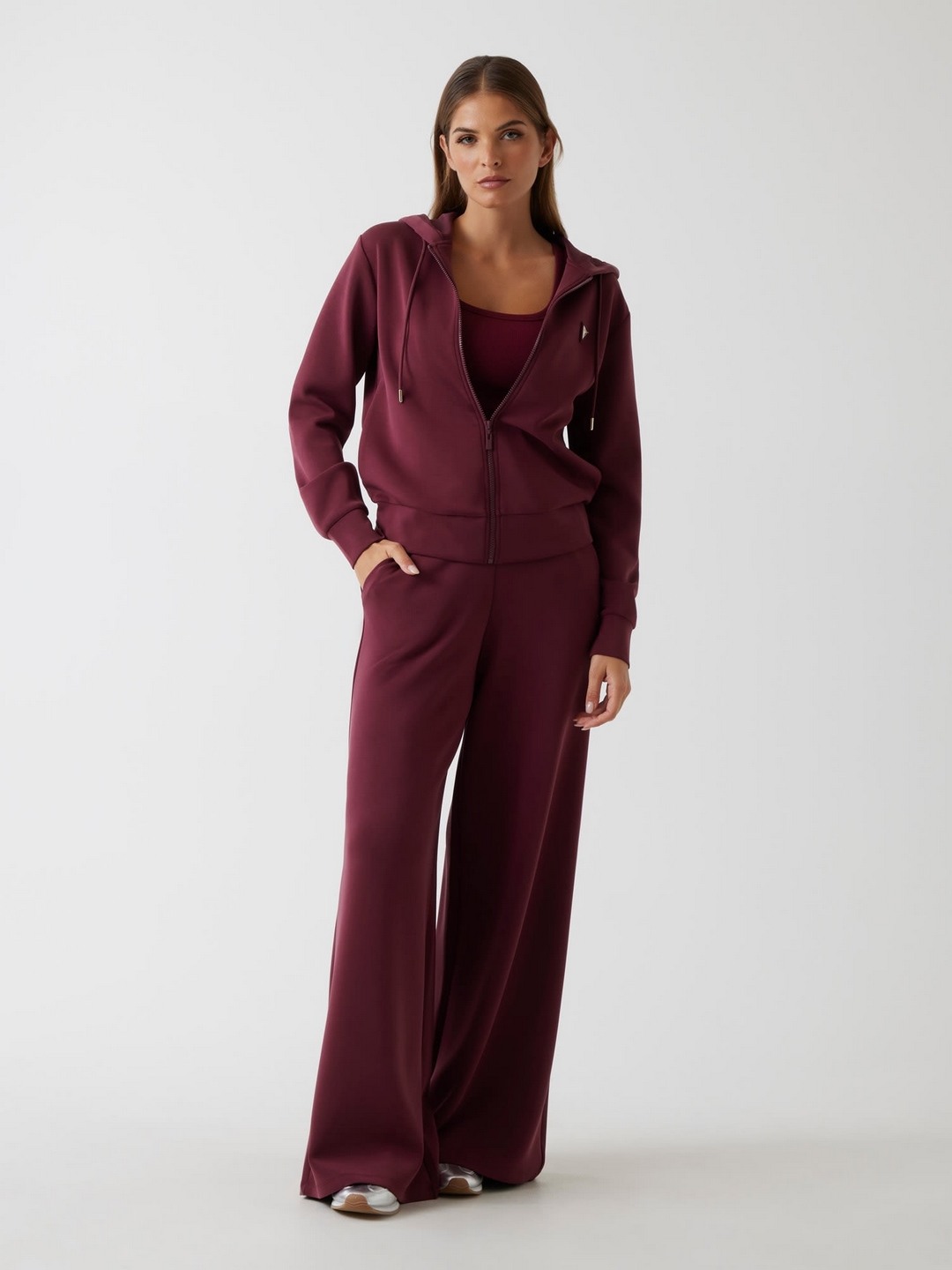 Discover the perfect blend of style and comfort with our wide leg trousers in a rich wine color. Crafted from a premium polyester blend fabric, these trousers offer a luxurious feel and a flattering drape. The high-rise design accentuates your waist, while the pull-on closure ensures ease and convenience. The solid pattern provides a versatile look, making these trousers ideal for both casual outings and formal occasions. Pair them with your favorite blouse or sweater for an effortlessly chic ensemble.