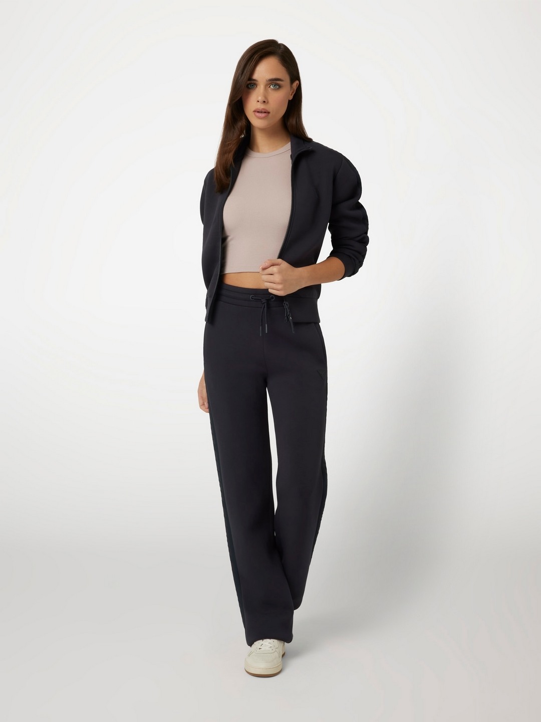 Discover the perfect blend of comfort and style with our women's track pants in a sophisticated charcoal color. Crafted from a premium viscose blend fabric, these pants offer a soft and breathable feel, ideal for all-day wear. The high-rise design provides a flattering fit, while the drawstring closure ensures a customizable and secure fit. The solid pattern adds a touch of elegance, making these track pants versatile for both casual outings and relaxed home days. Elevate your wardrobe with this essential piece.