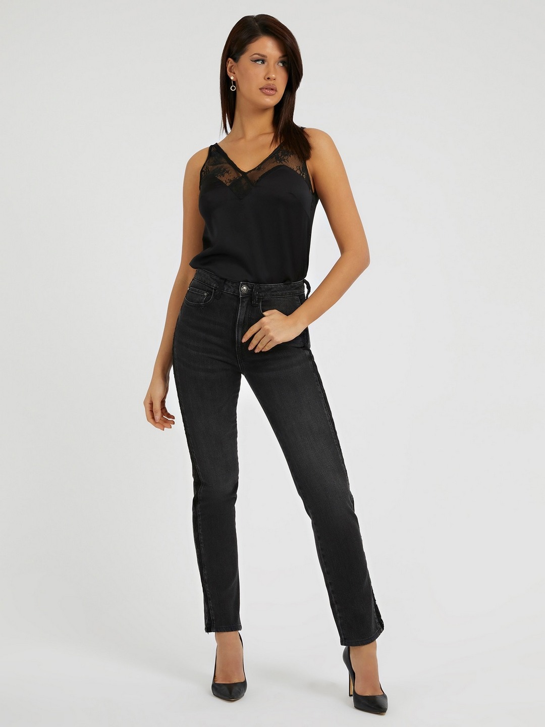 Discover the perfect blend of style and comfort with our black solid pattern jeans for women. Crafted from a premium cotton blend fabric, these jeans offer a soft and breathable feel, ensuring all-day comfort. The mid-rise design provides a flattering fit that complements your natural shape, while the zip closure adds a touch of modern convenience. Versatile and timeless, these jeans are ideal for any occasion, whether you're dressing up for a night out or keeping it casual for a day at the office.