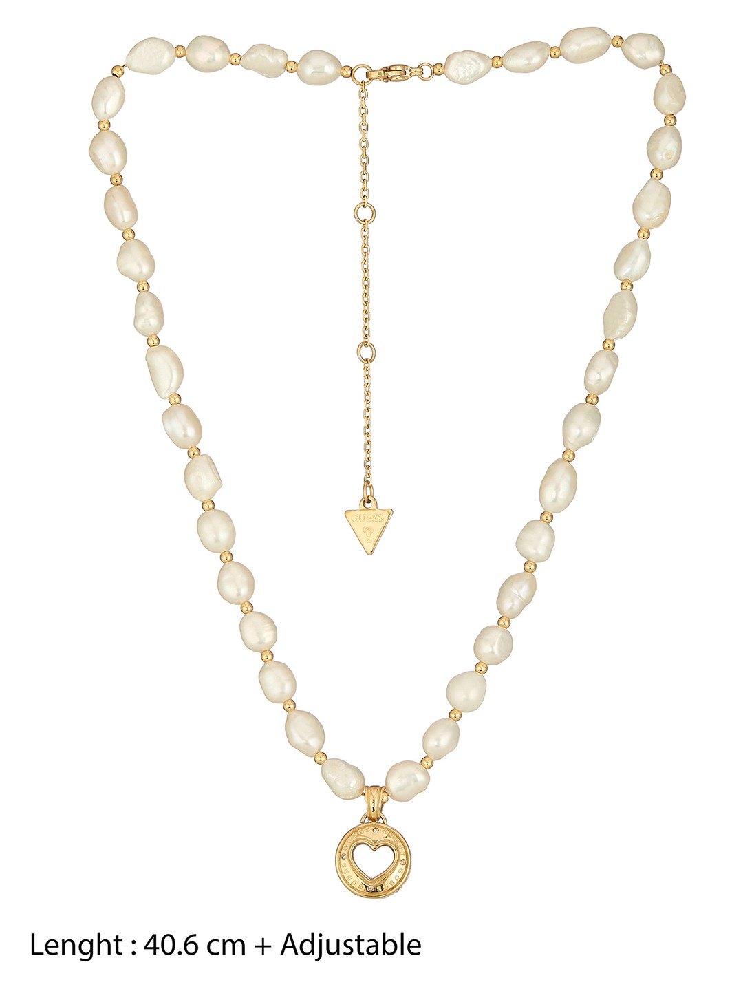 Guess Women Stainless Steel Beads Rolling Hearts Necklace