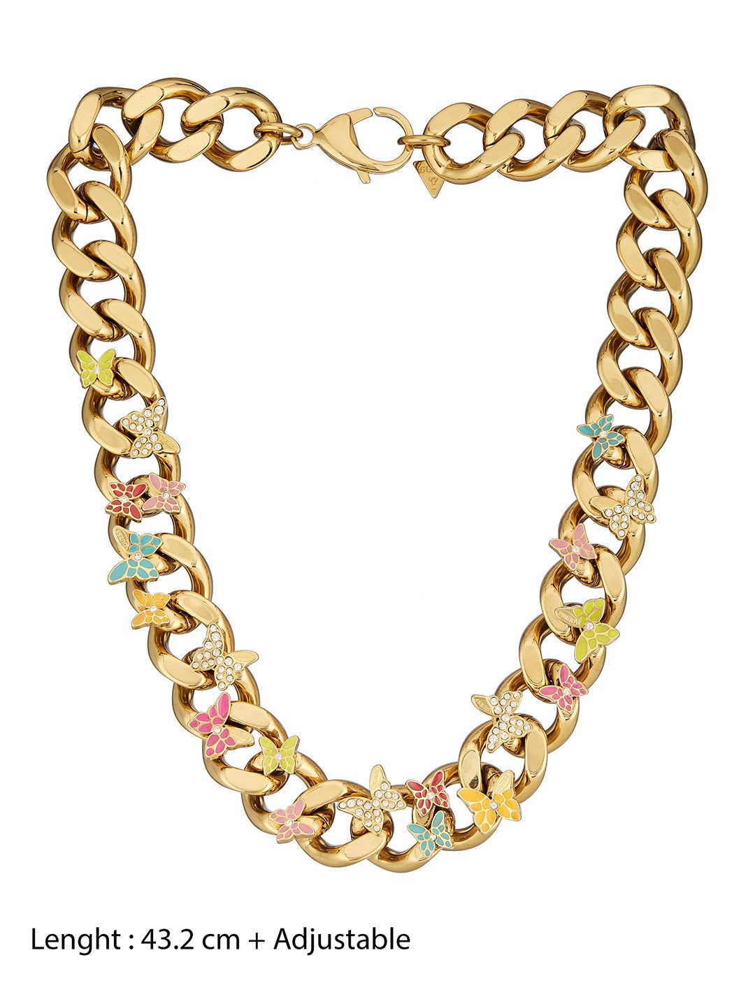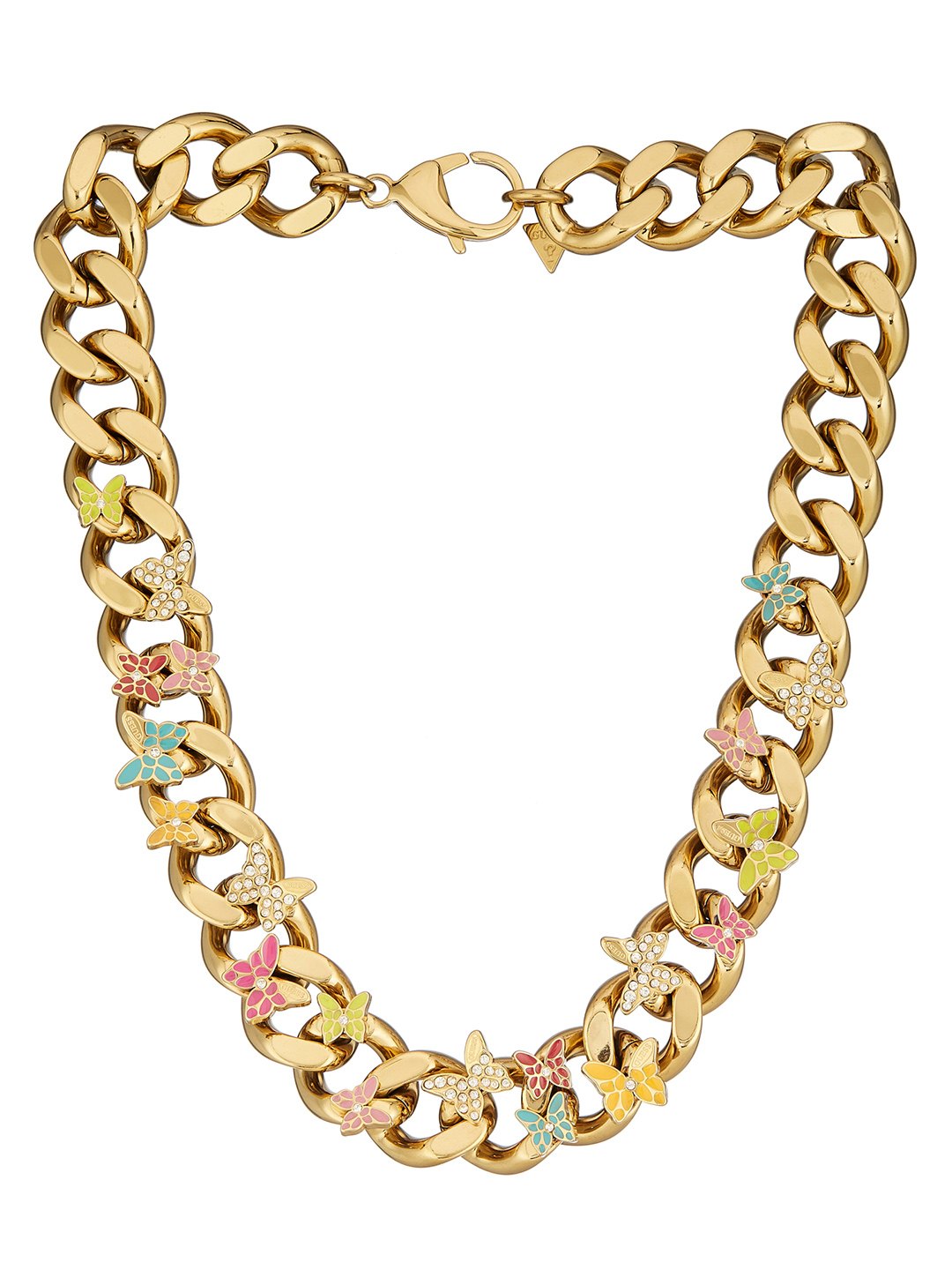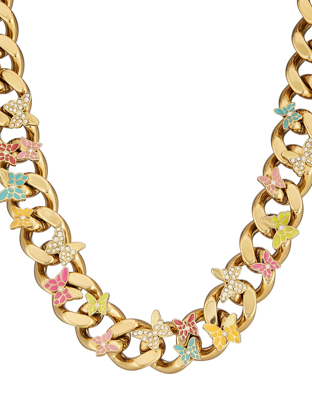 Guess Women Stainless Steel Crystal Chrysalis Chain Necklace