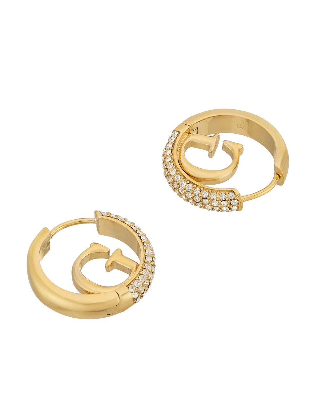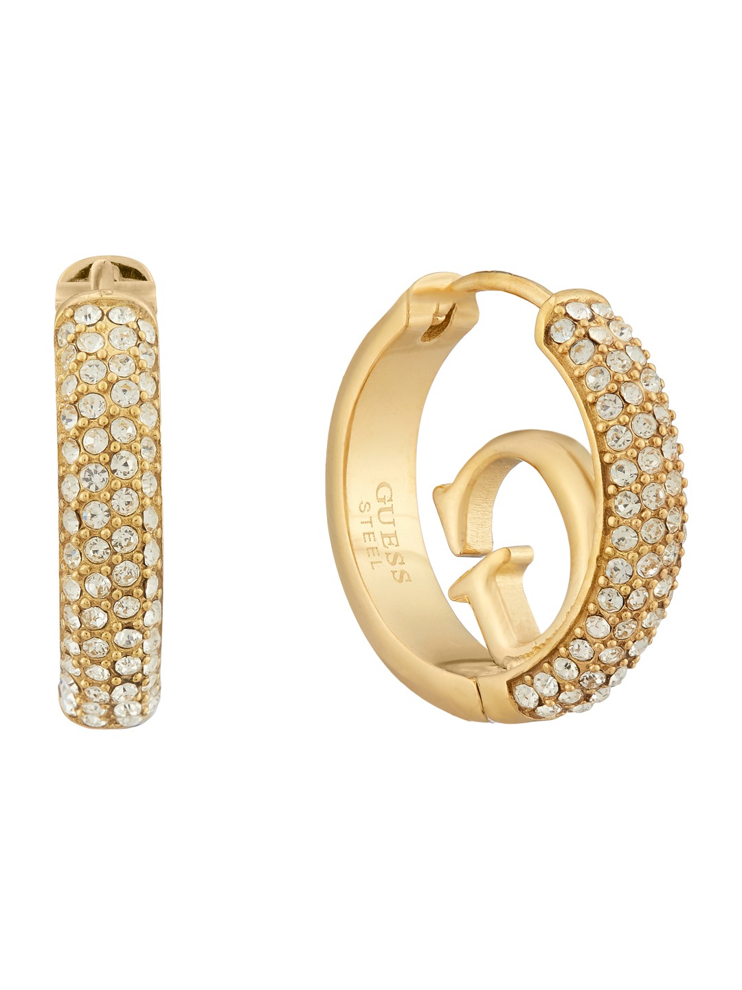 Guess Women Stainless Steel Crystal Crazy Earrings Hoops Earrings