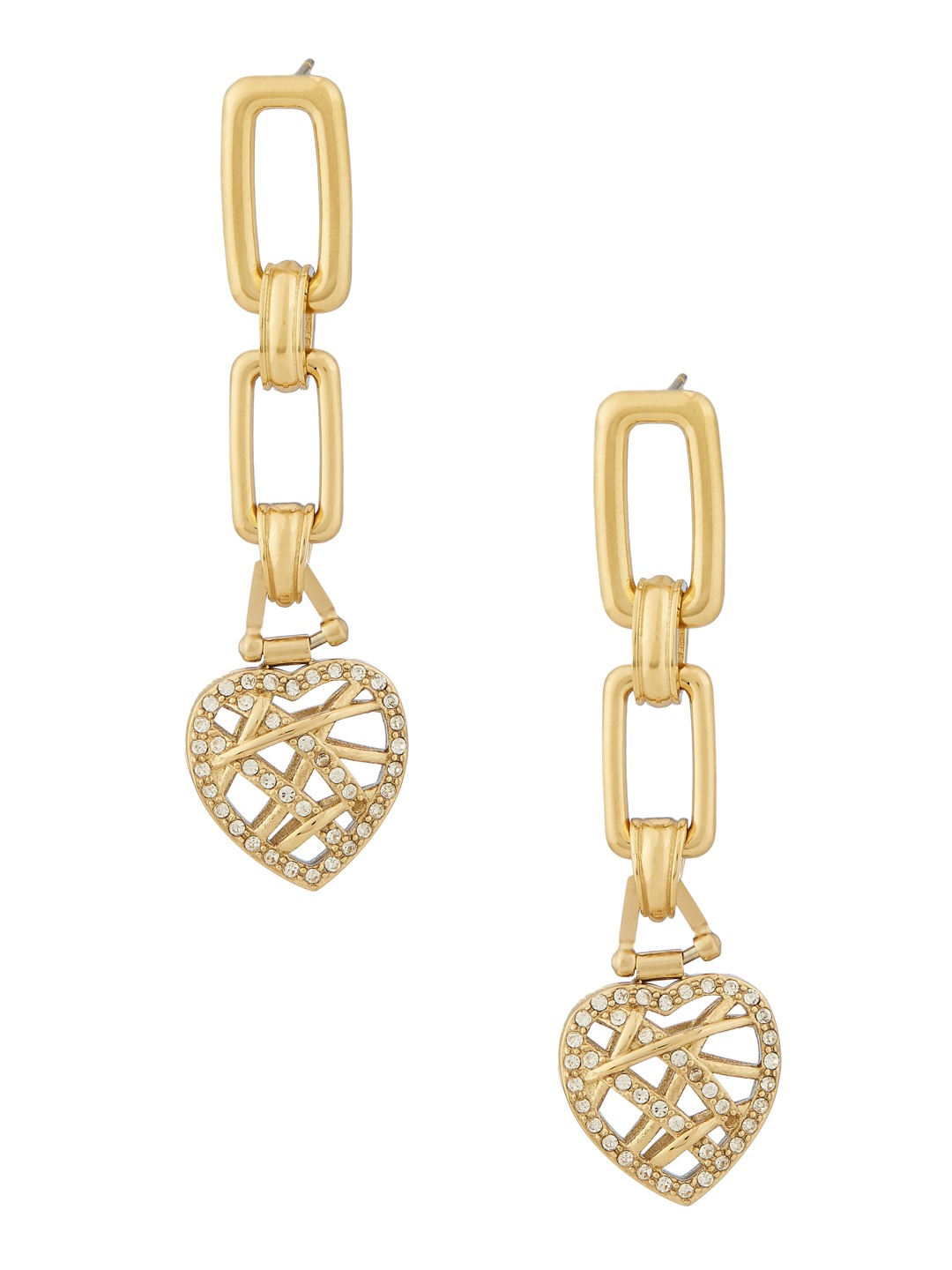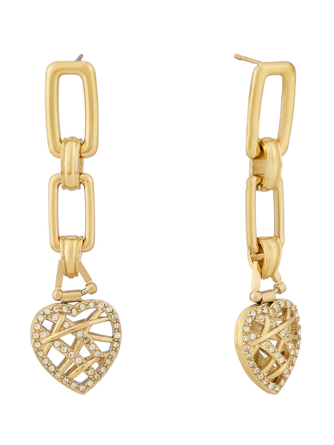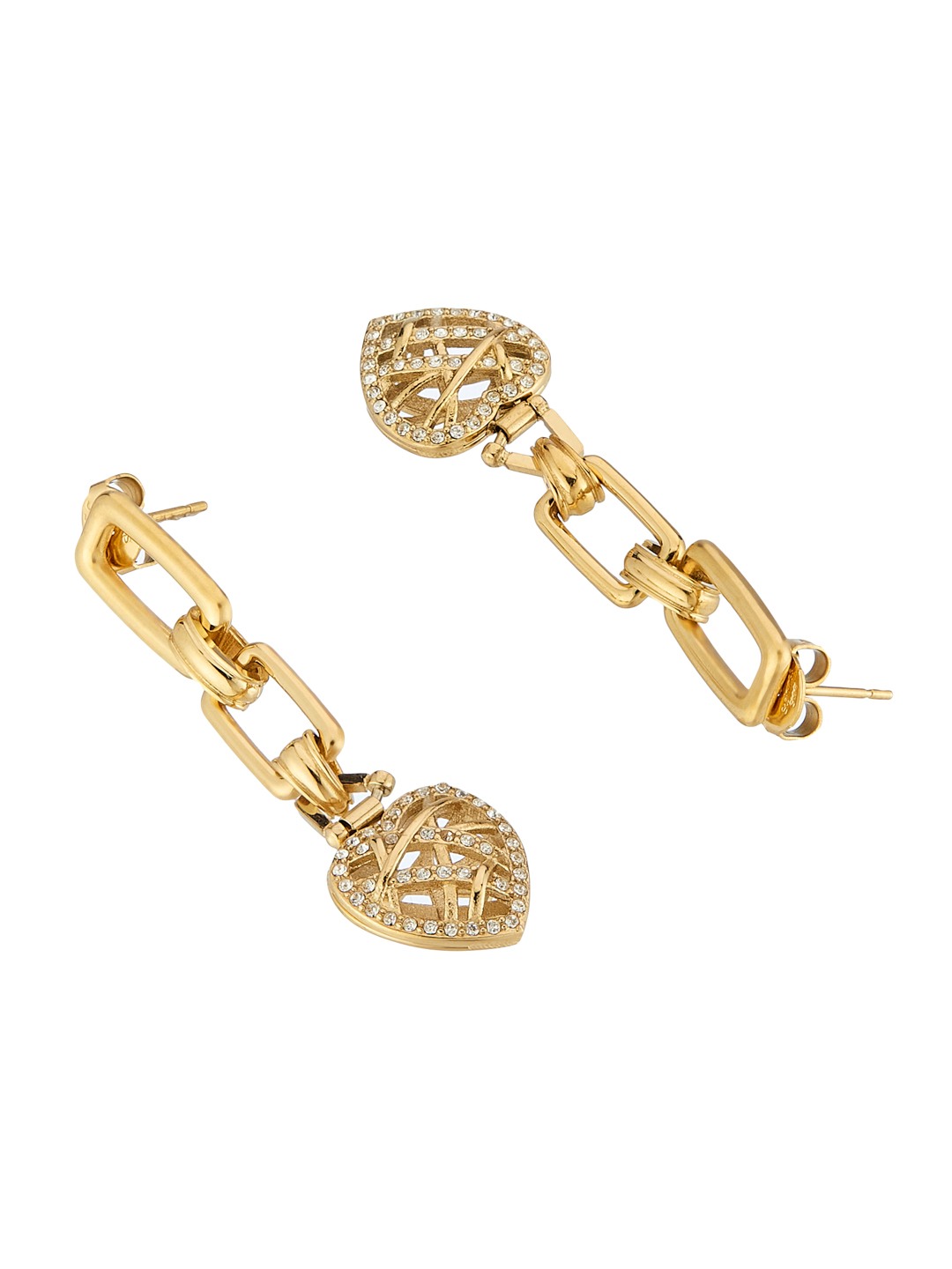Guess Women Stainless Steel Crystal Heart Cage Drops Danglers