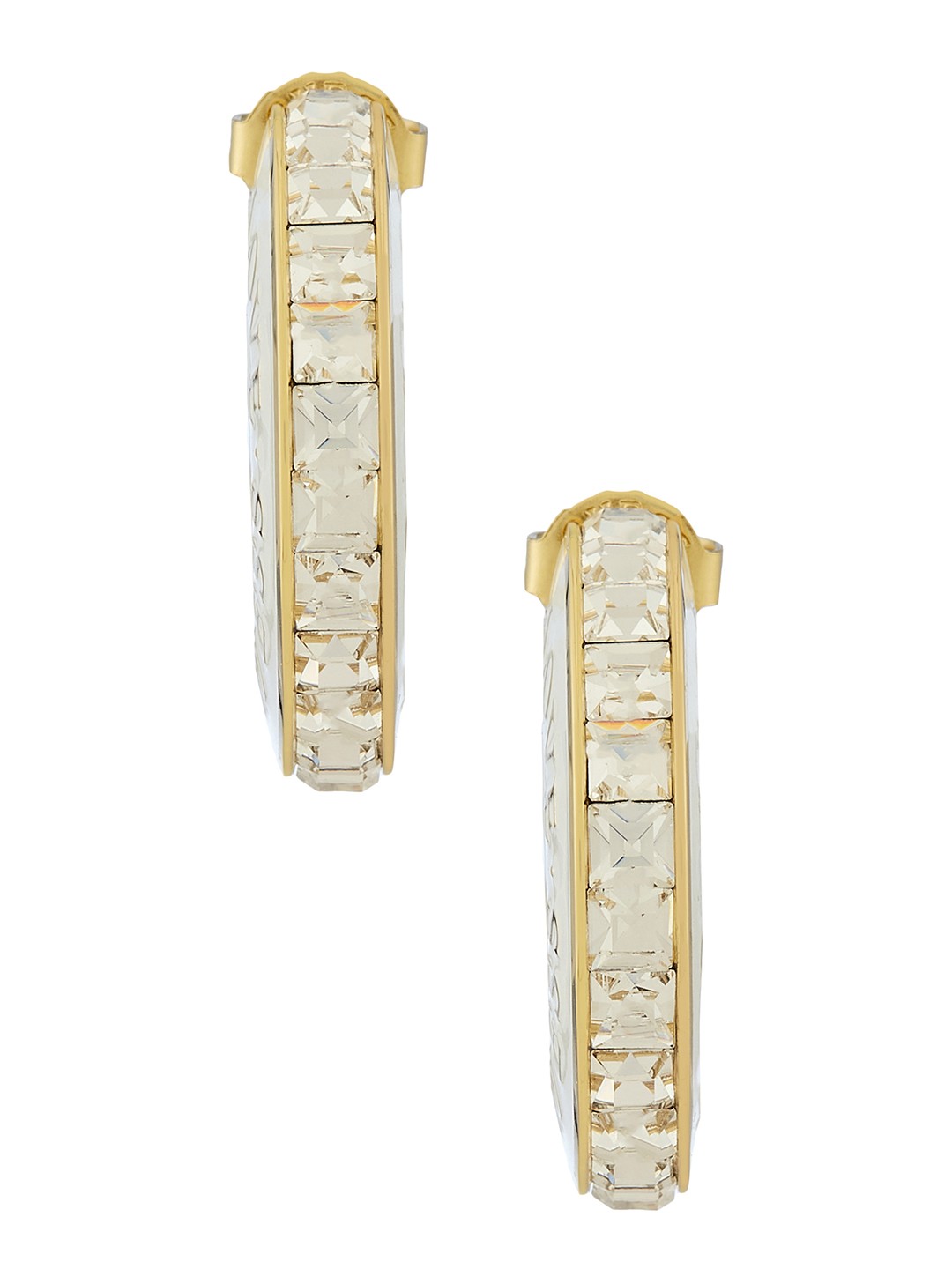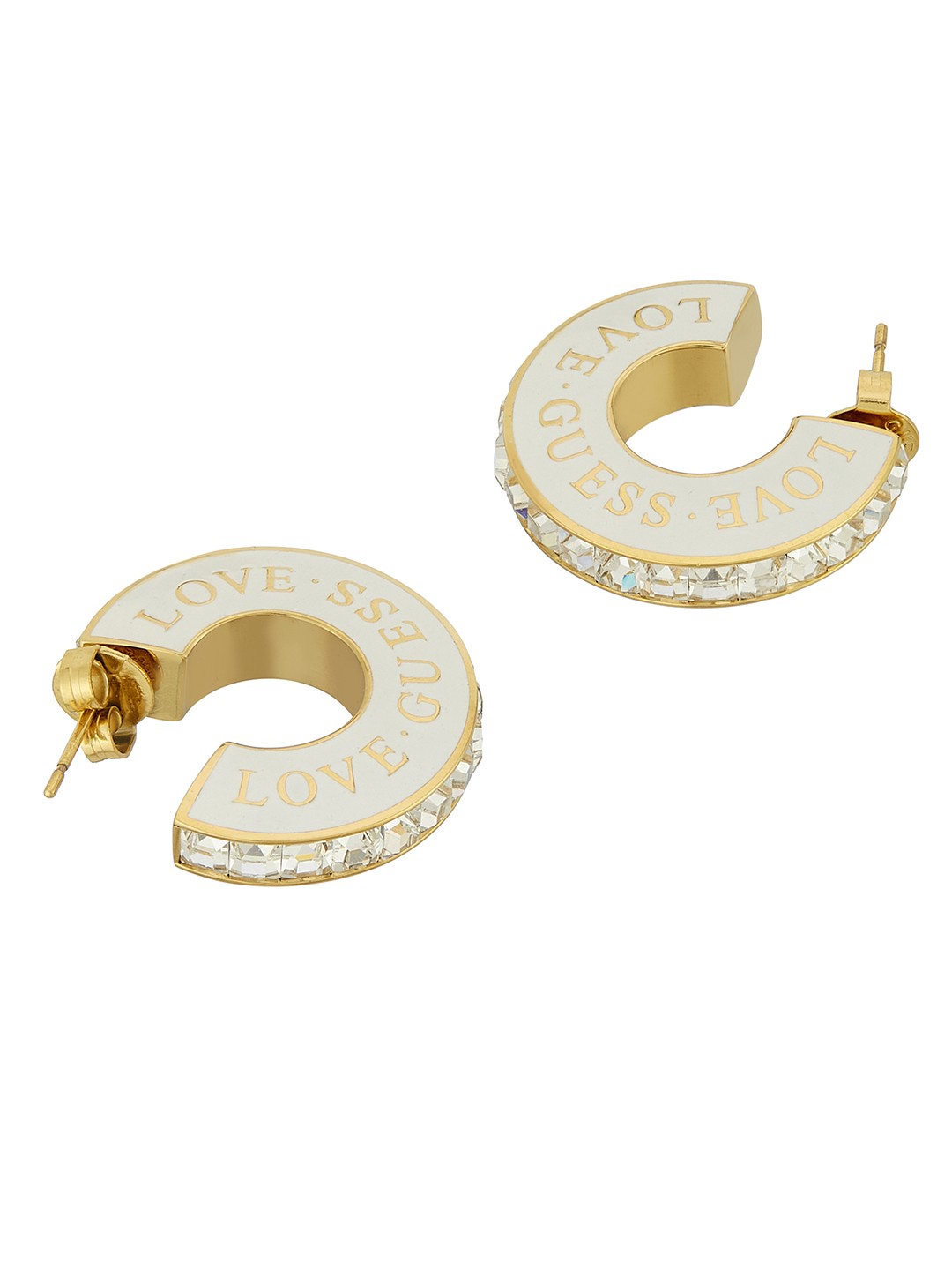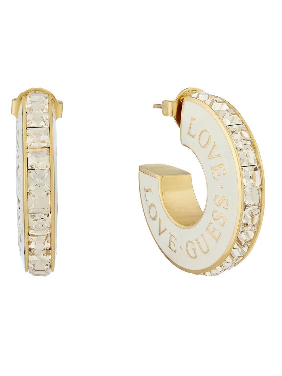 Guess Women Stainless Steel Crystal Love Hoops Earrings