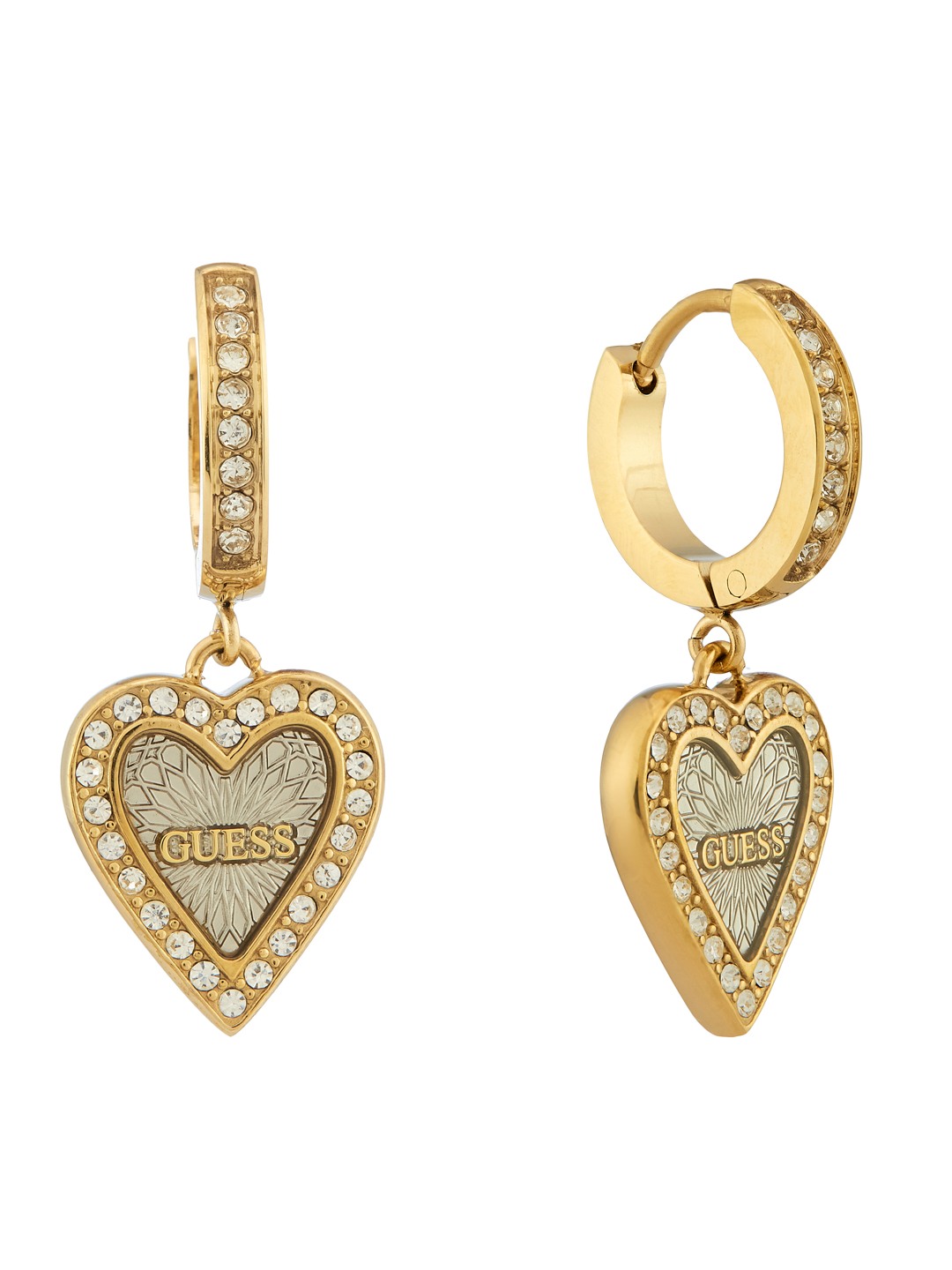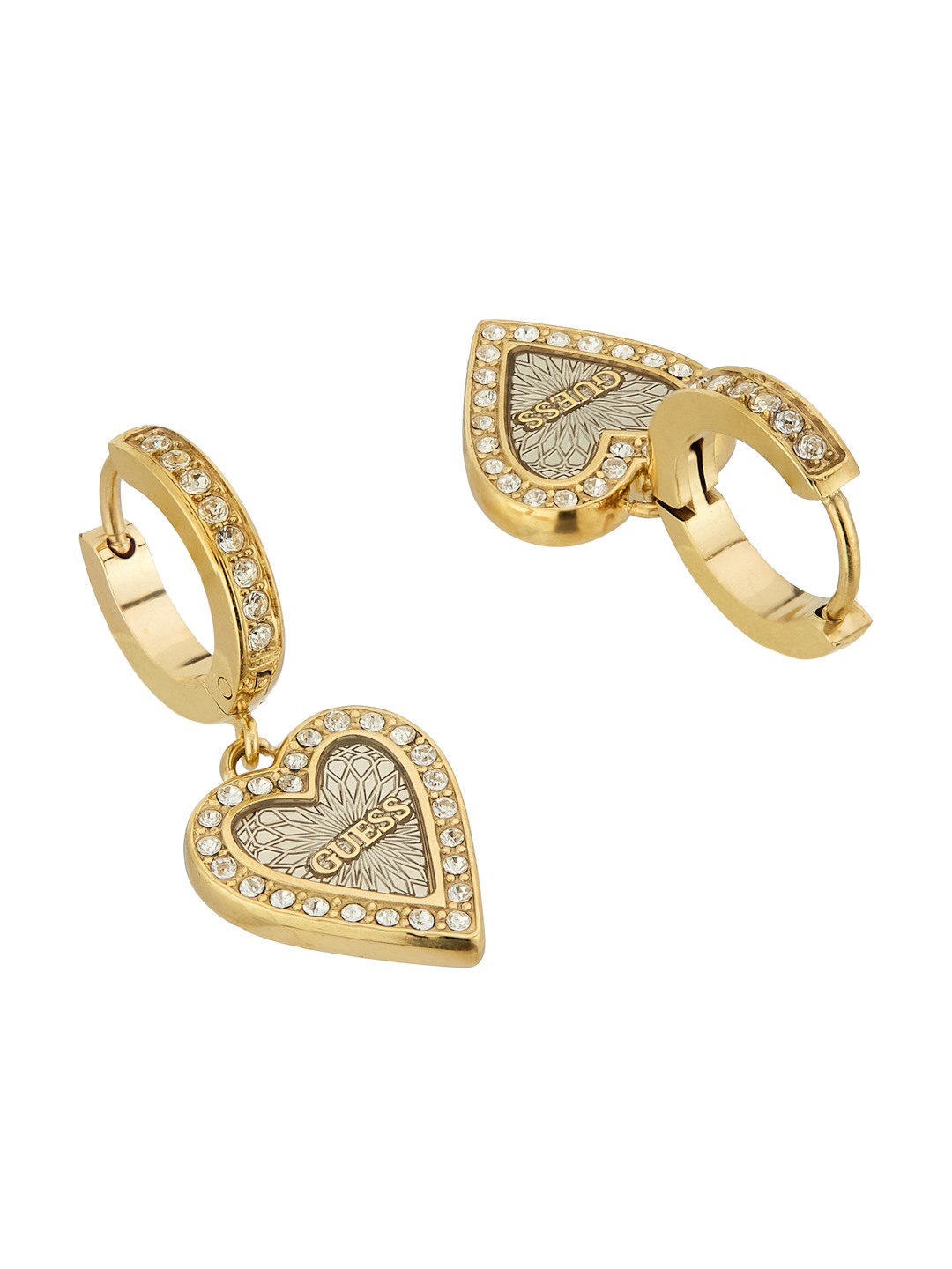 Guess Women Stainless Steel Crystal Love Me Tender Hoops Earrings