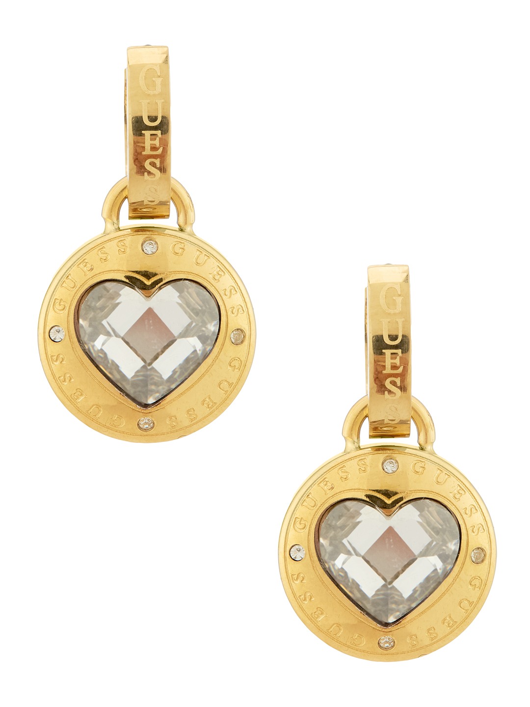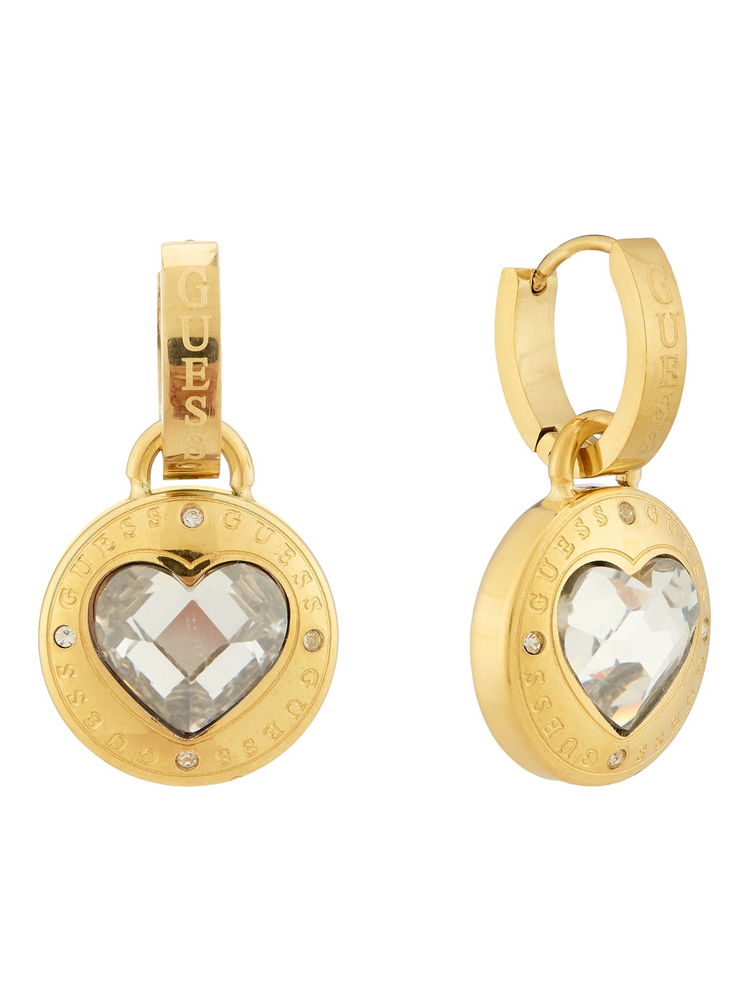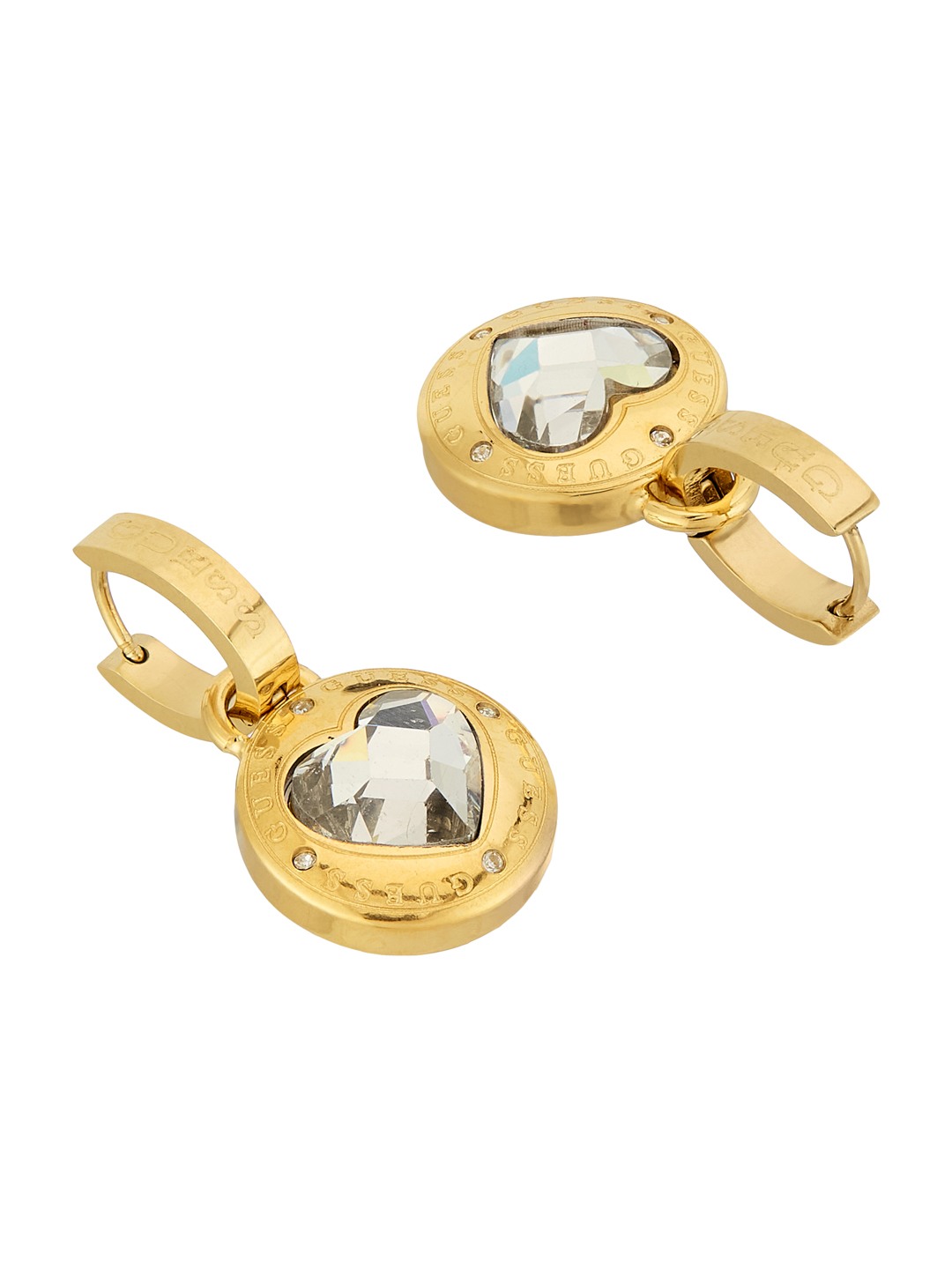 Guess Women Stainless Steel Crystal Rolling Hearts Hoops Earrings