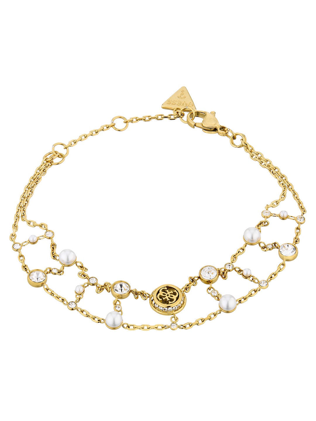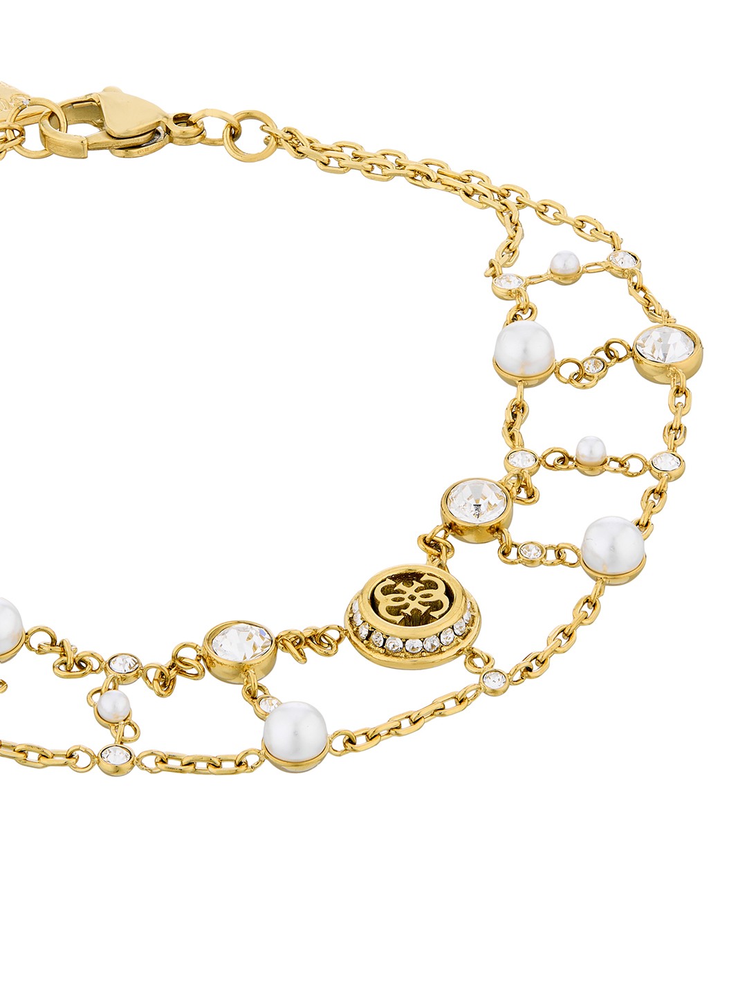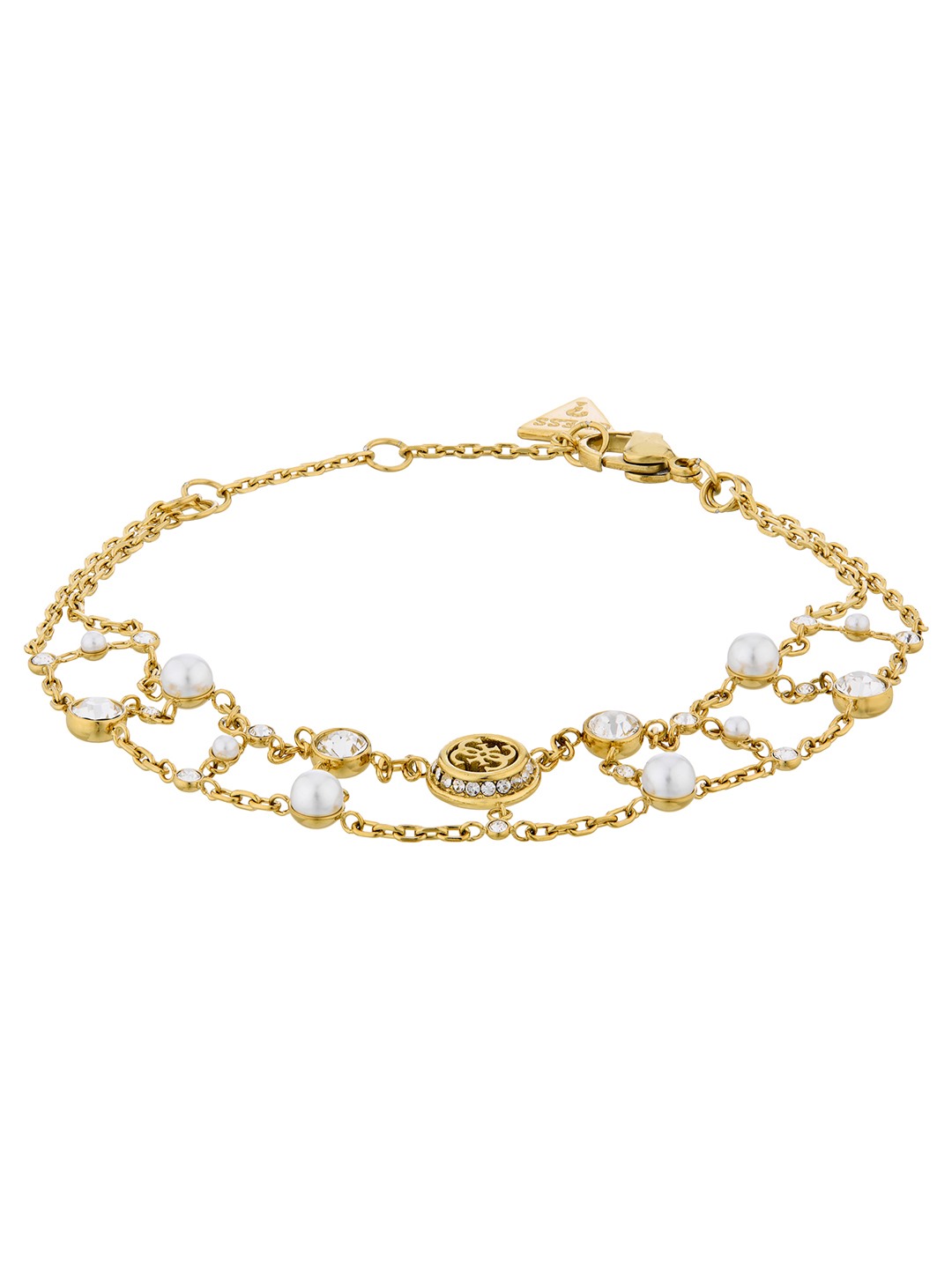 Guess Women Tiny Pearly Gold Pleated Steel Bracelet
