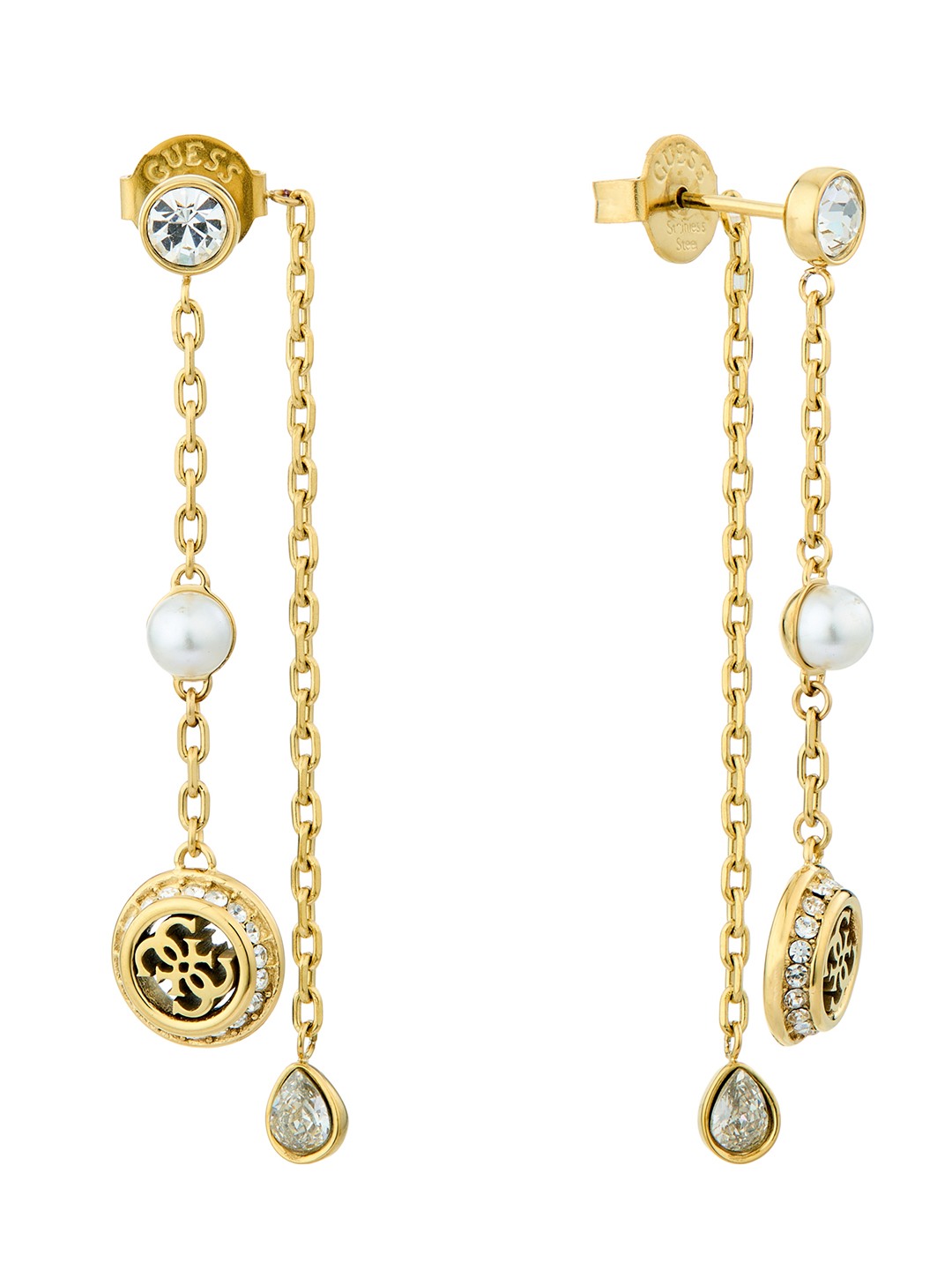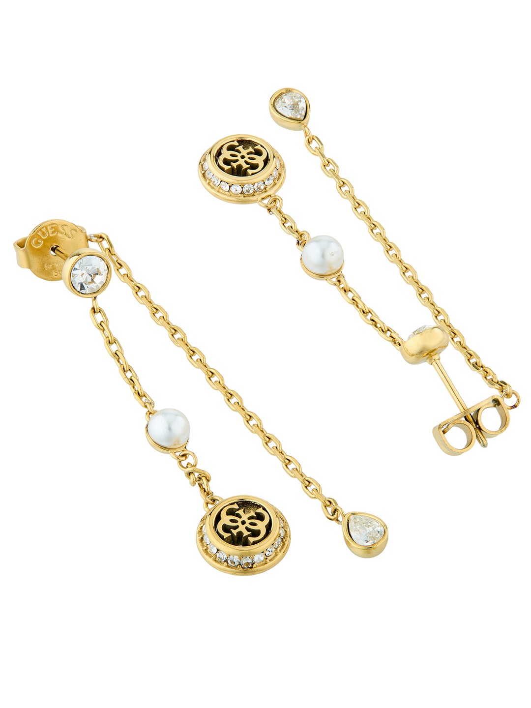 Guess Women Tiny Pearly Gold Pleated Steel Drop Earrings