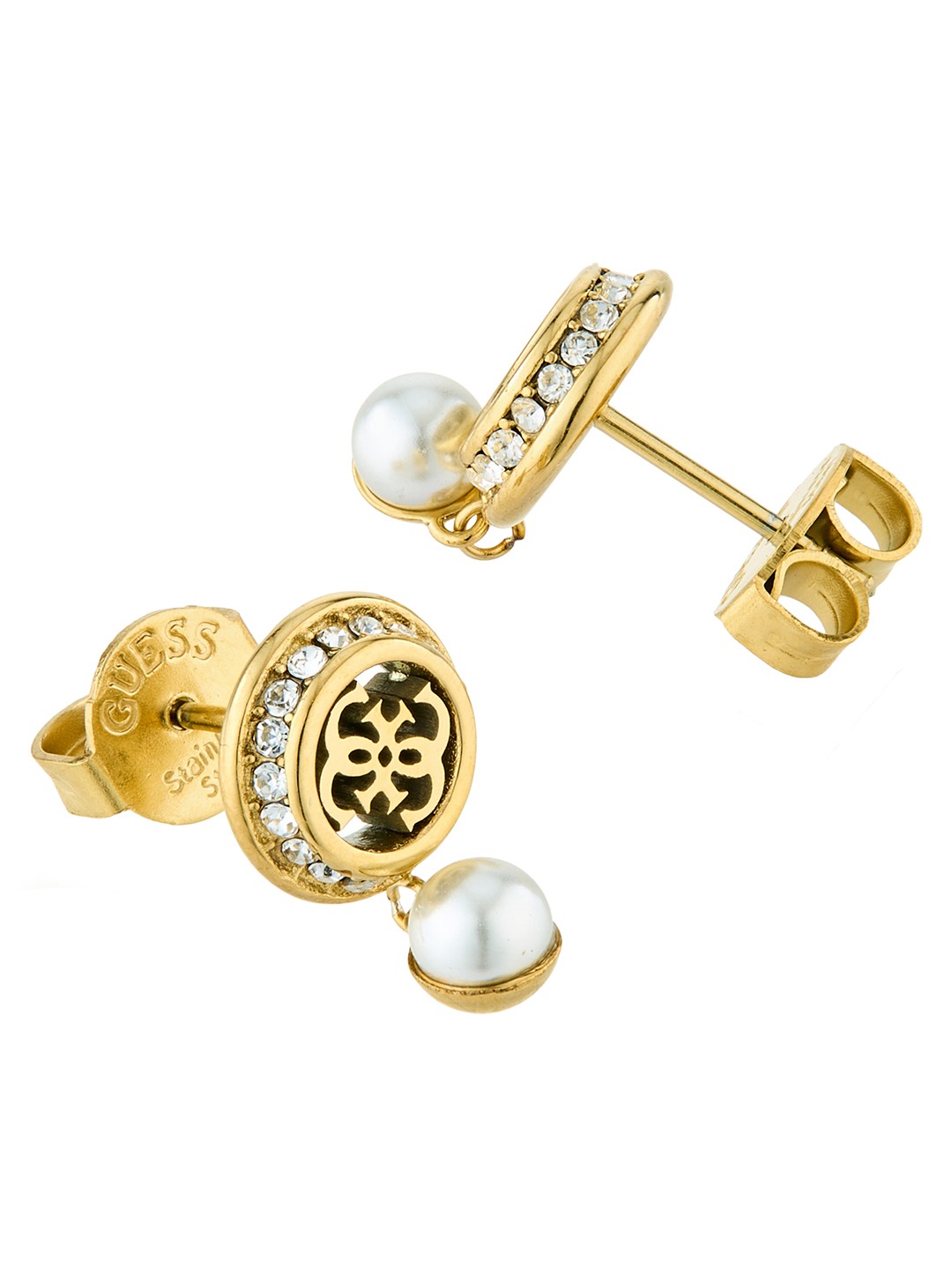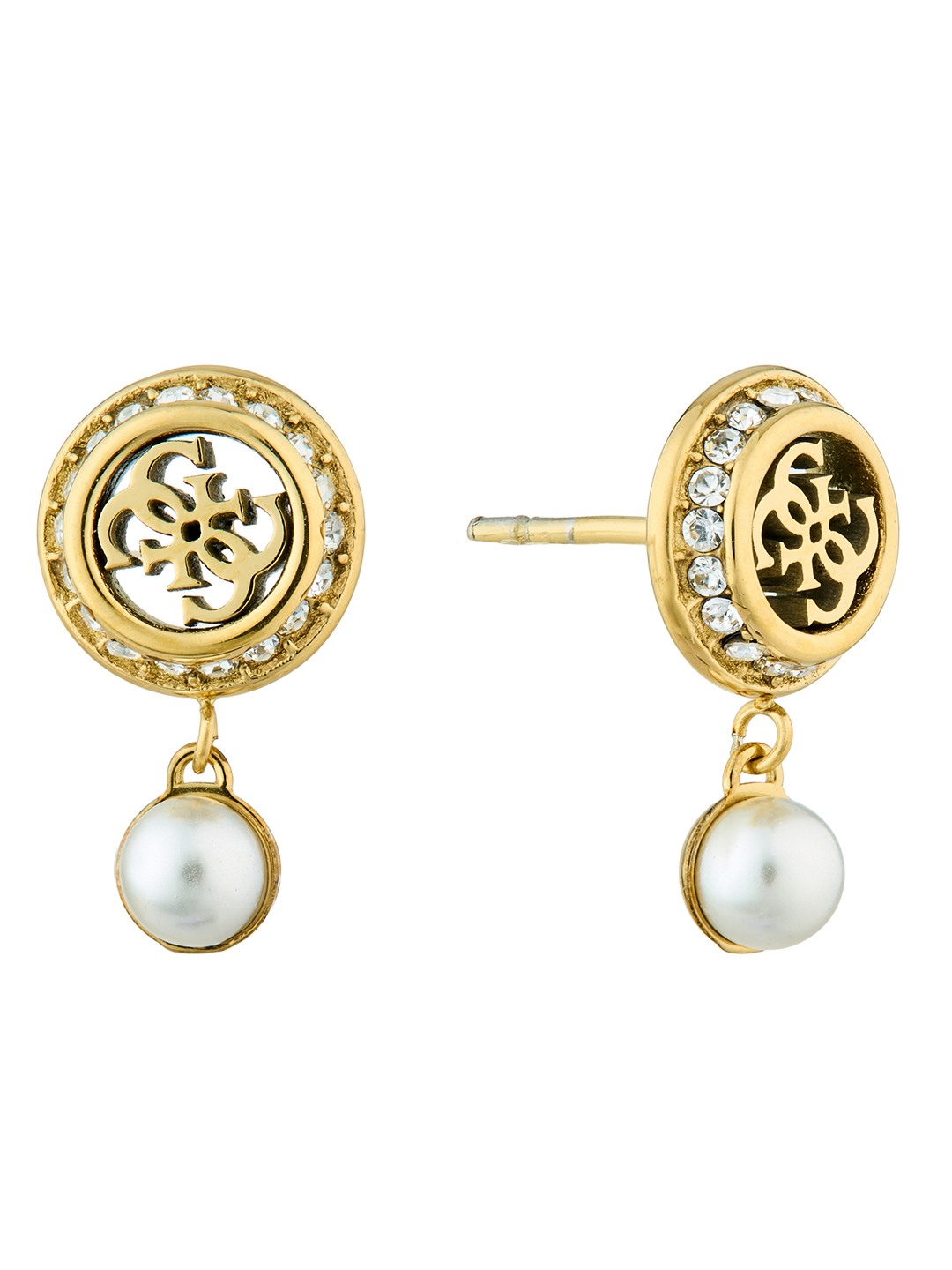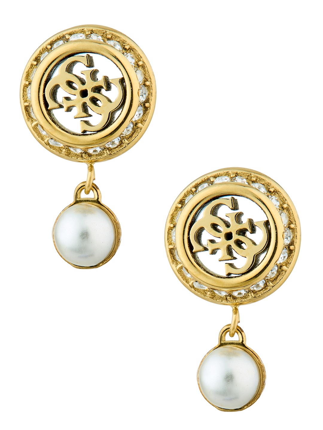 Guess Women Tiny Pearly Gold Pleated Steel Drop Earrings