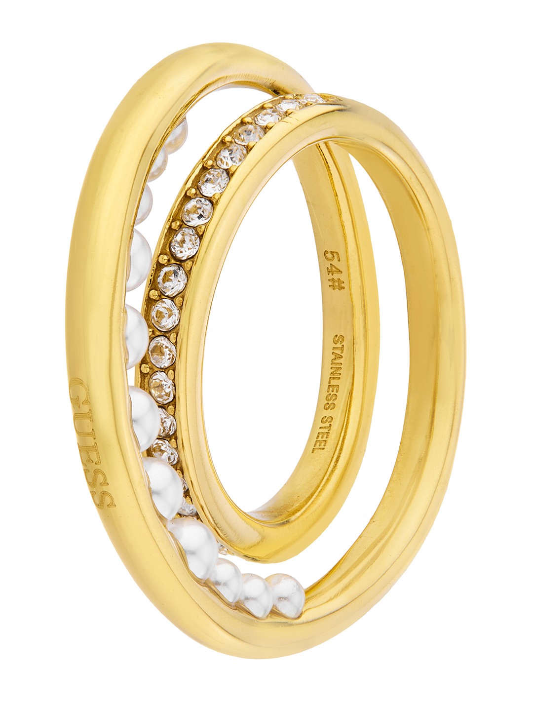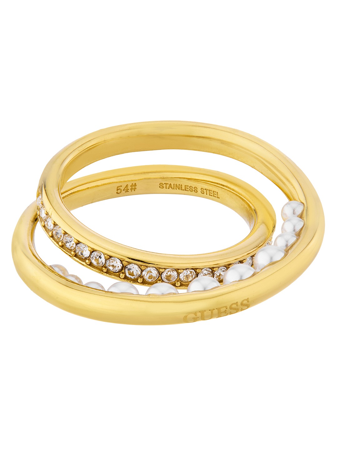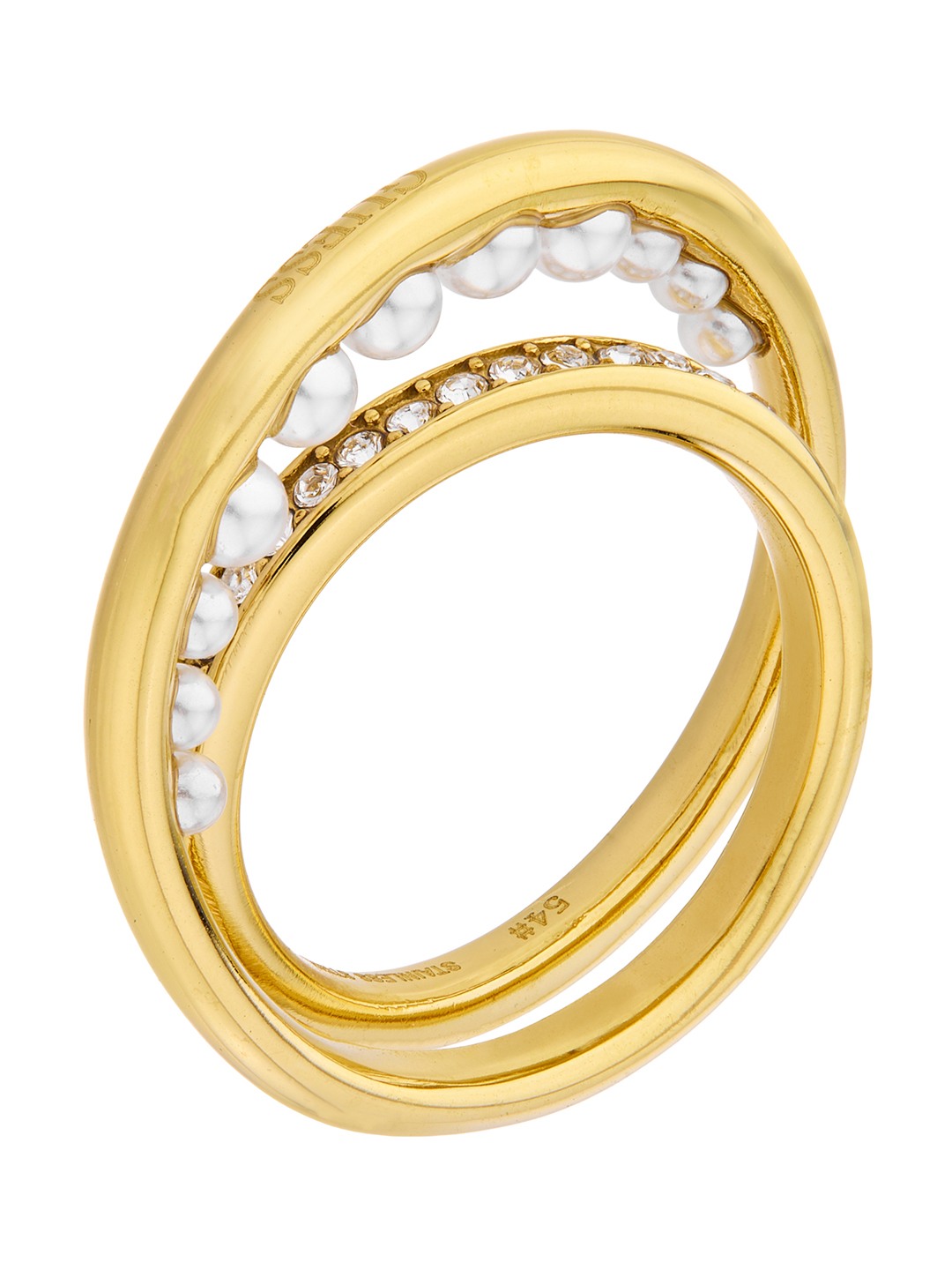 Guess Women Tiny Pearly Gold Pleated Steel Ring