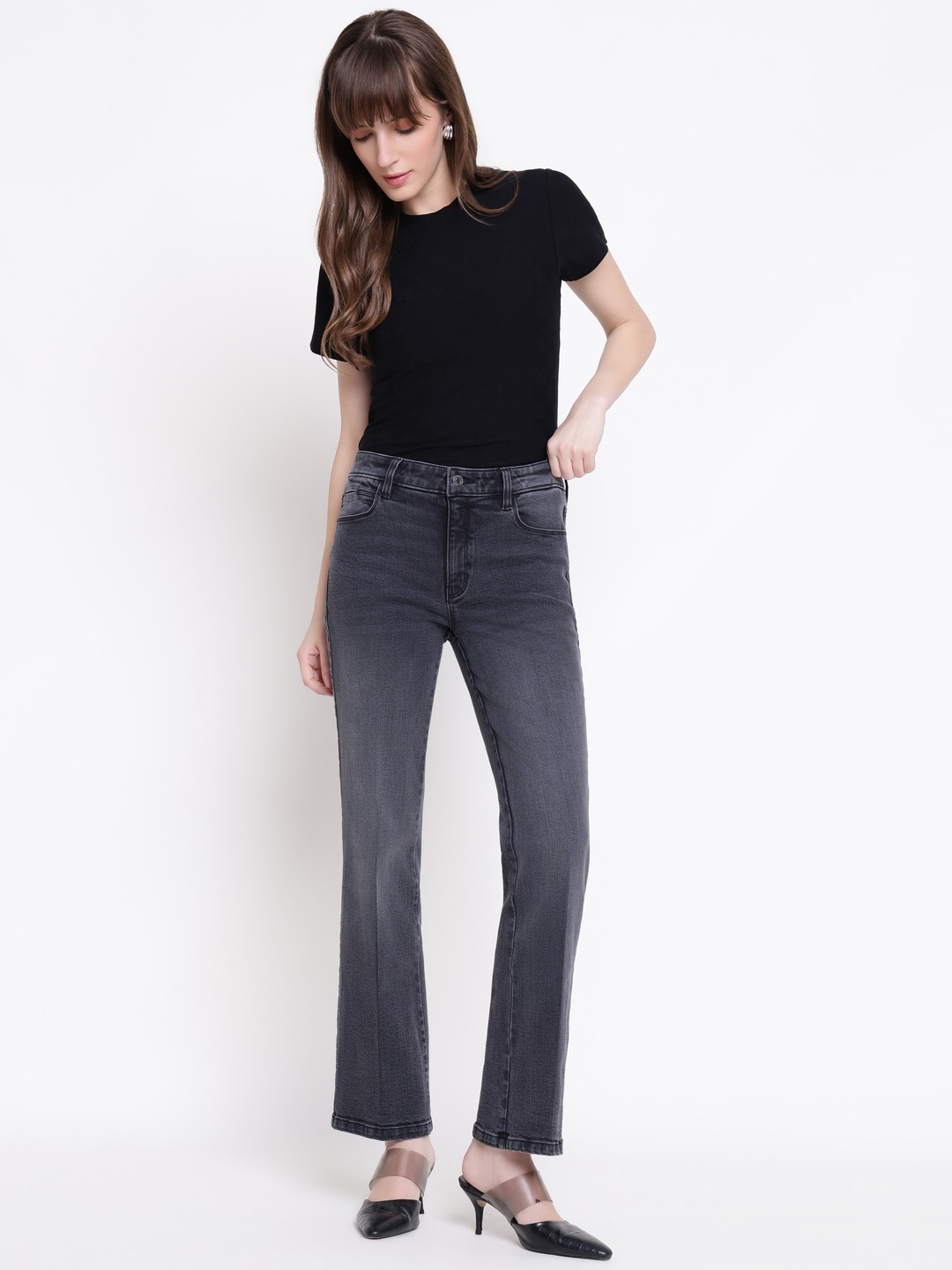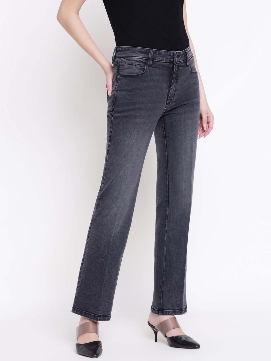 These sexy straight denim jeans in a stylish grey color are perfect for women seeking a versatile and comfortable look. Featuring a straight fit and high rise design, they offer a flattering silhouette. The solid pattern adds a classic touch, while the button closure ensures easy wear. Made from soft cotton fabric, these jeans provide all-day comfort and durability. Ideal for casual outings or dressing up for a night out, they are a must-have addition to any wardrobe.