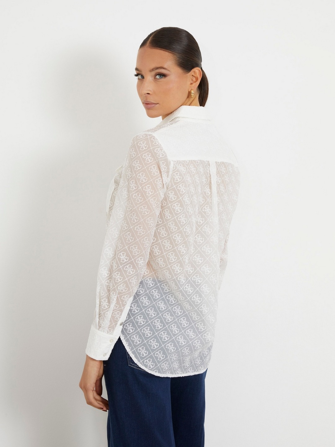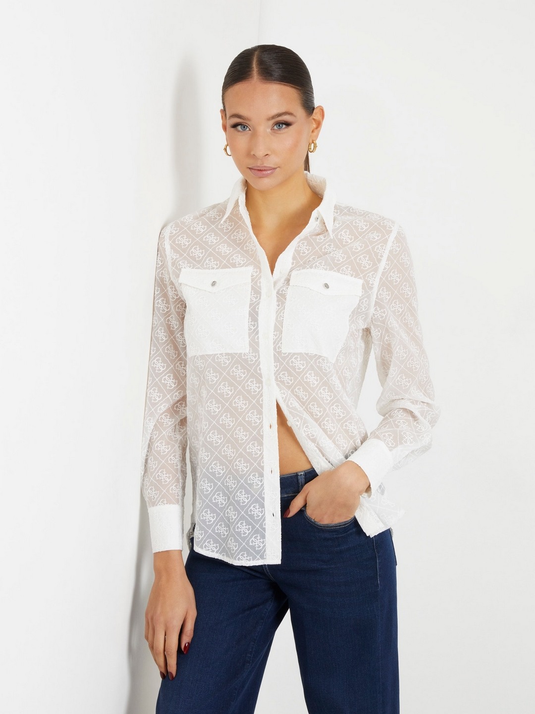 White Printed Spread Collar Full Sleeves Shirt