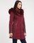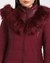Wine Solid Hooded Full Sleeves Faux Fur Quilted Jacket