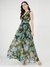 Hanoi Green Floral Printed V-Neck Sleeveless Empire Dress
