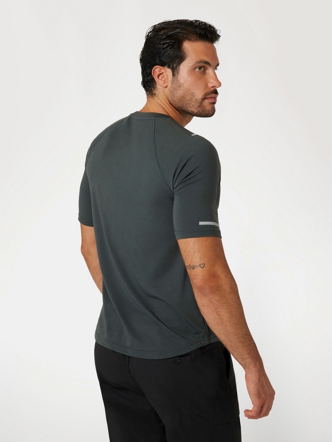 Heather Black Solid Round Neck Short Sleeves T-Shirt