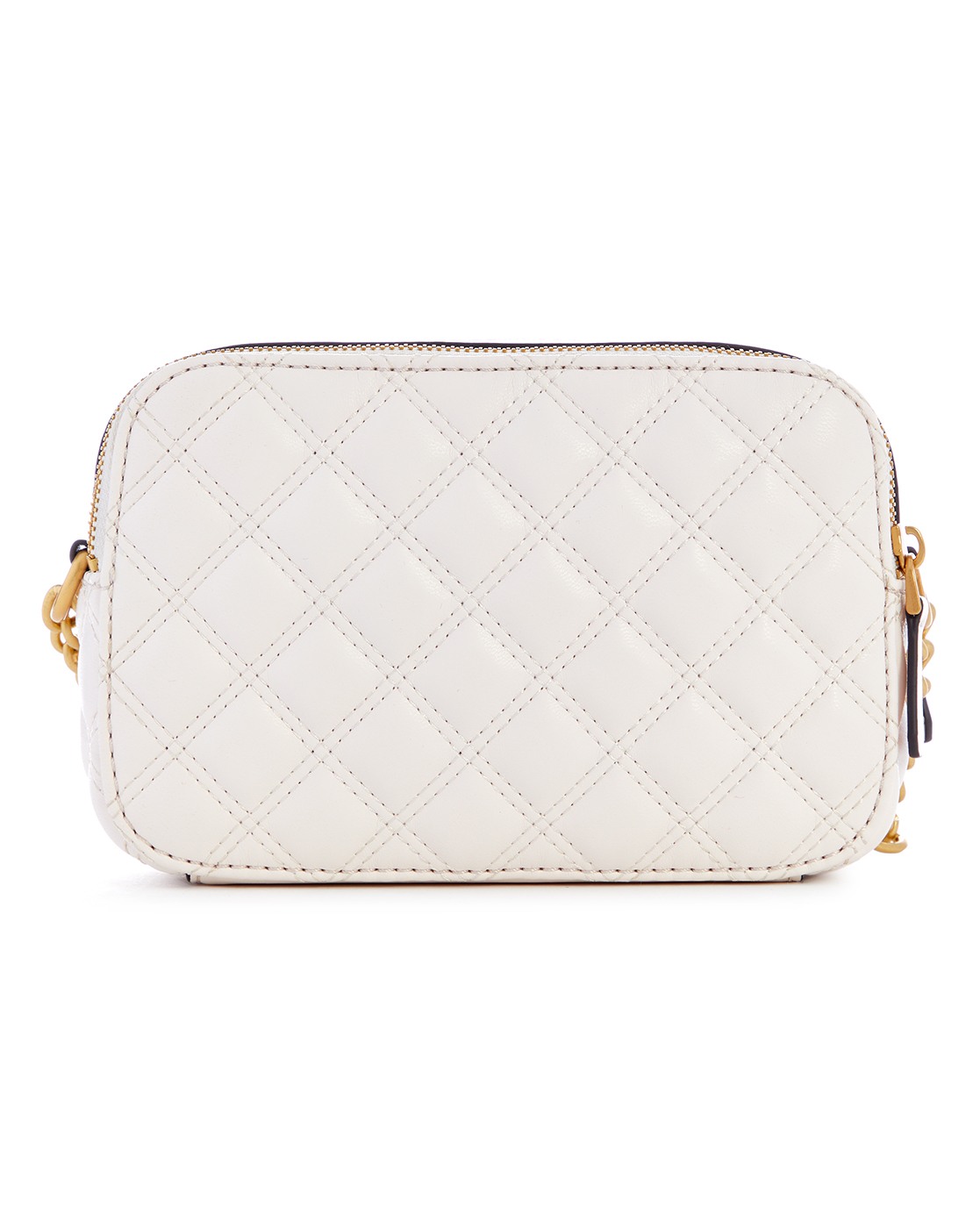 Ivory Polyurethane Quilted Crossbody Camera Bag