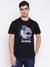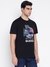 Japanese Wave Mid Organic Stream Jet Black Graphic Round Neck Regular Fit T-Shirt