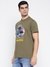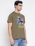 Japanese Wave Mid Organic Stream Olive Morning Graphic Round Neck Regular Fit T-Shirt