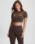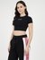 Jet Black Printed Round Neck Short Sleeves Crop Tops