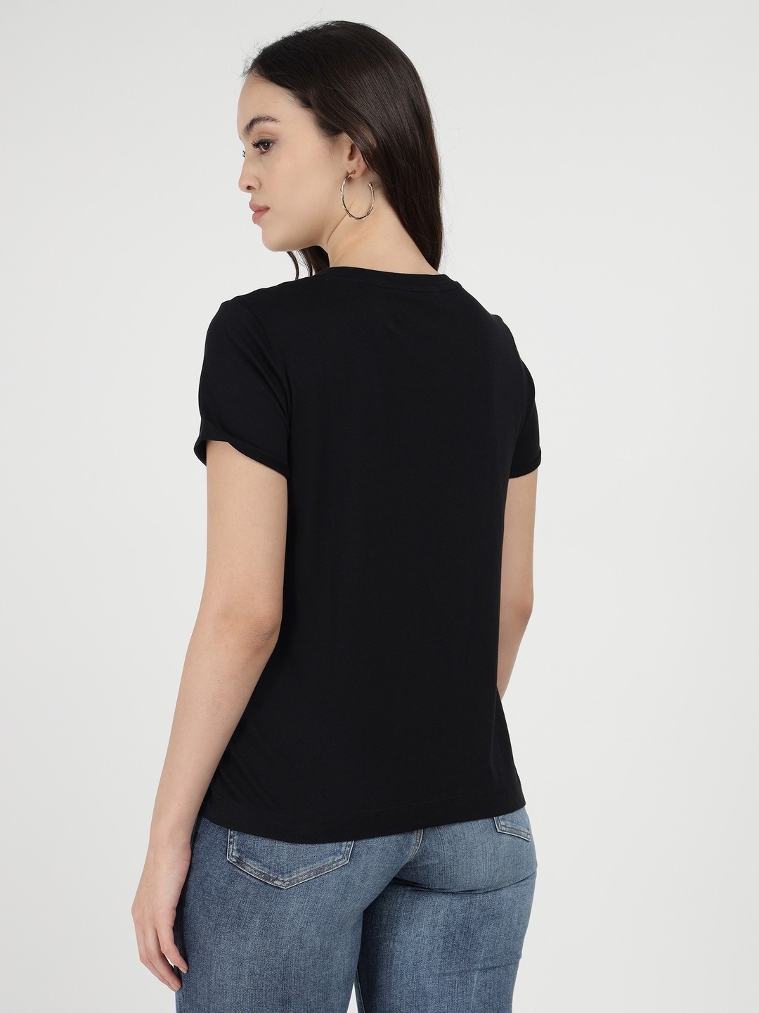 Jet Black Printed Round Neck Short Sleeves T-Shirt