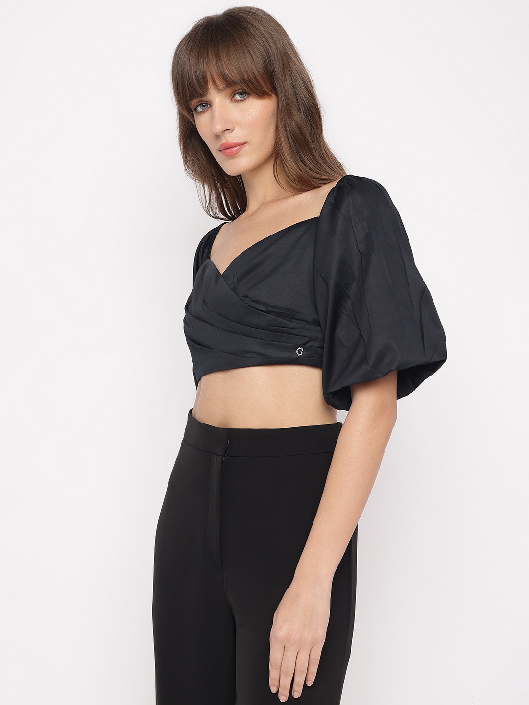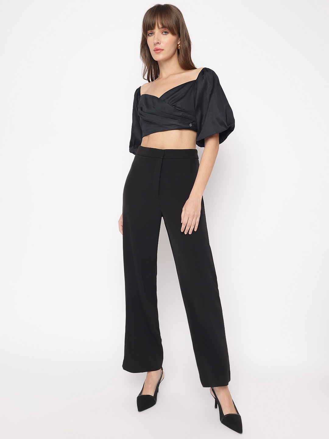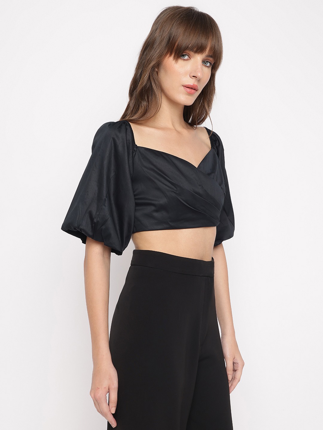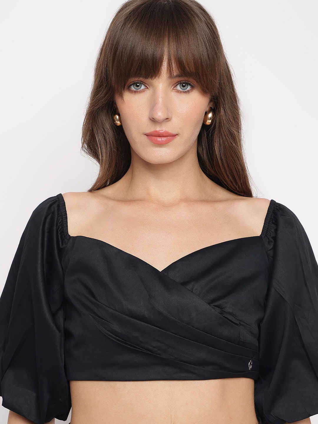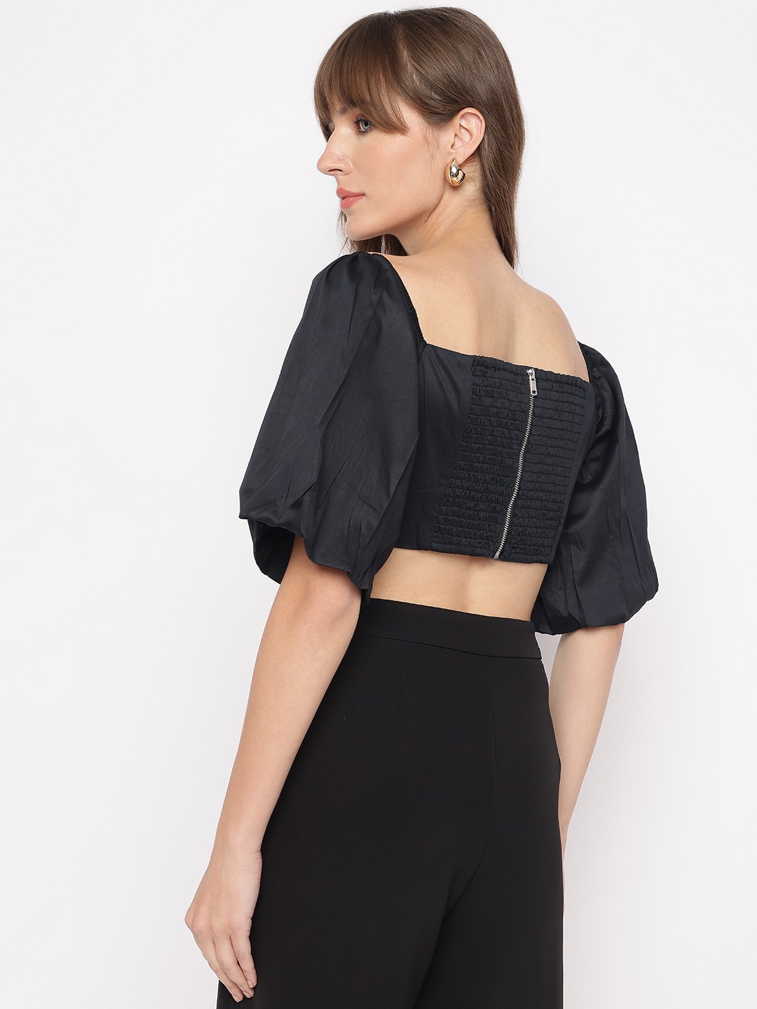 Jet Black Solid Sweetheart Neck Short Sleeves Tube Top