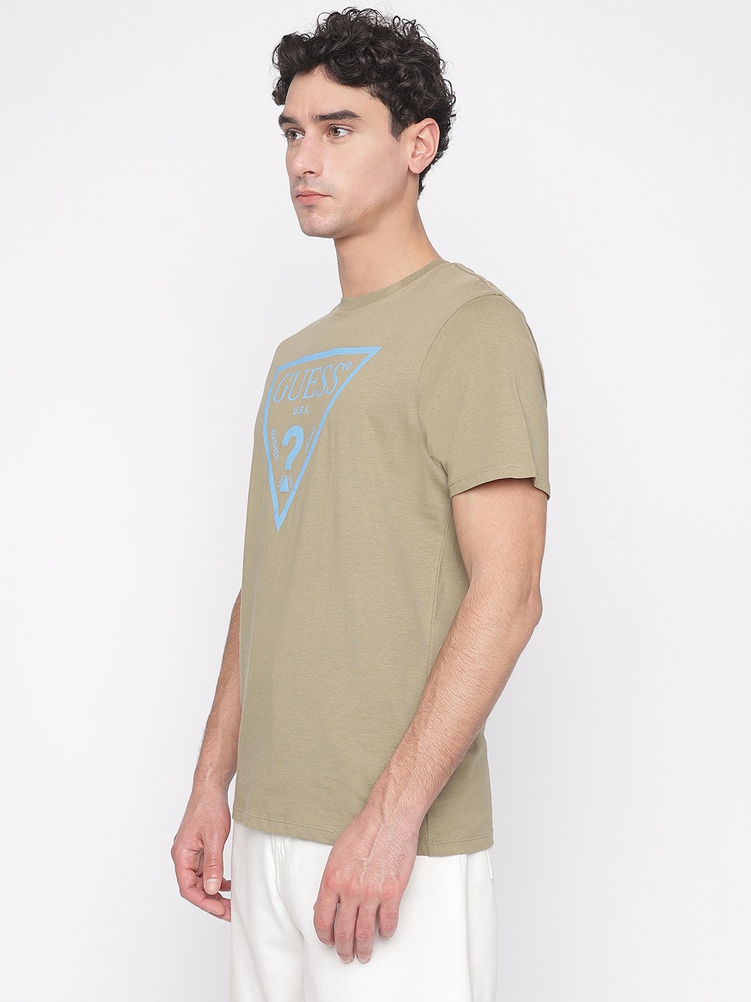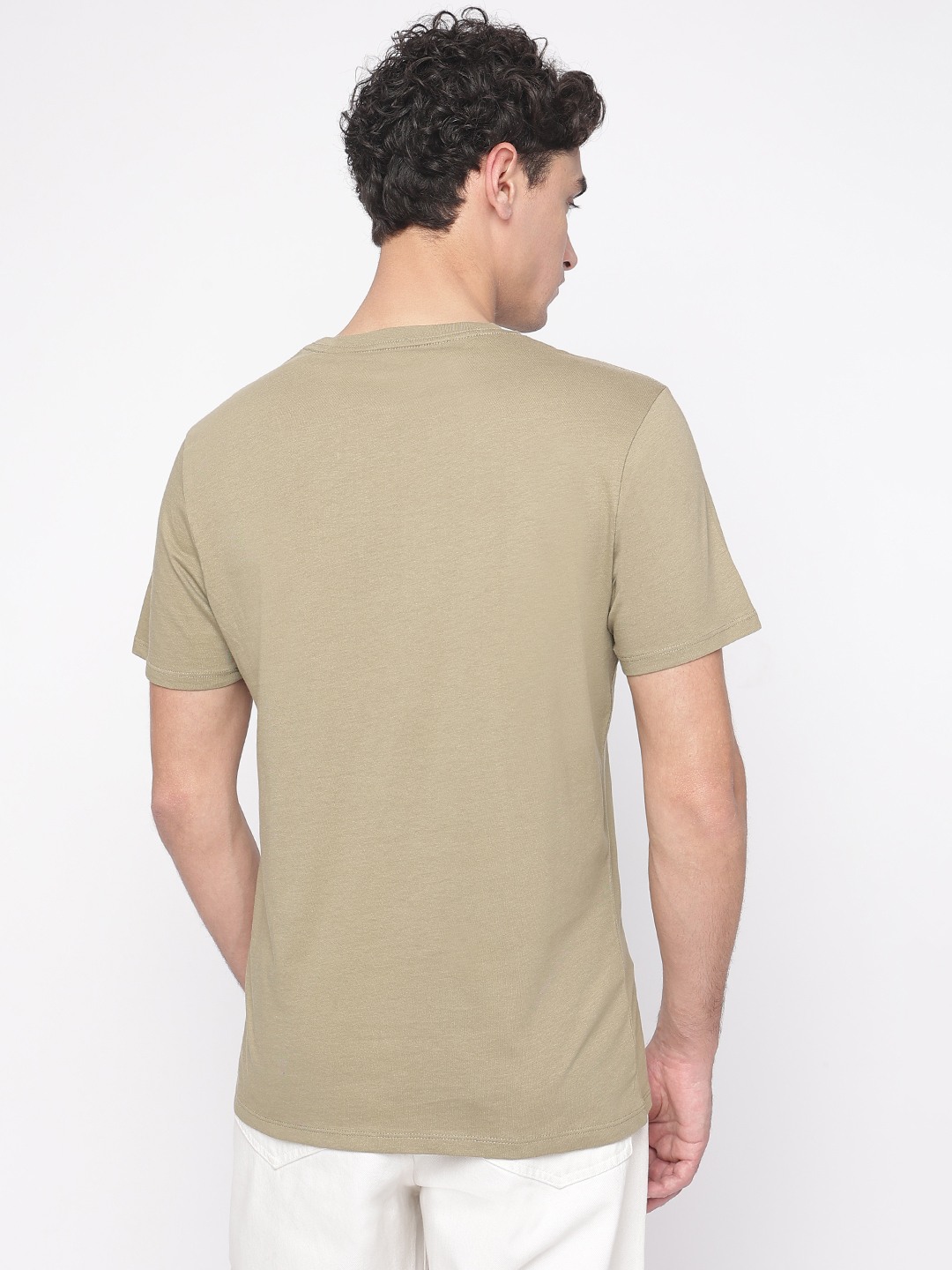 Khaki Way Printed Round Neck Short Sleeves T-Shirt