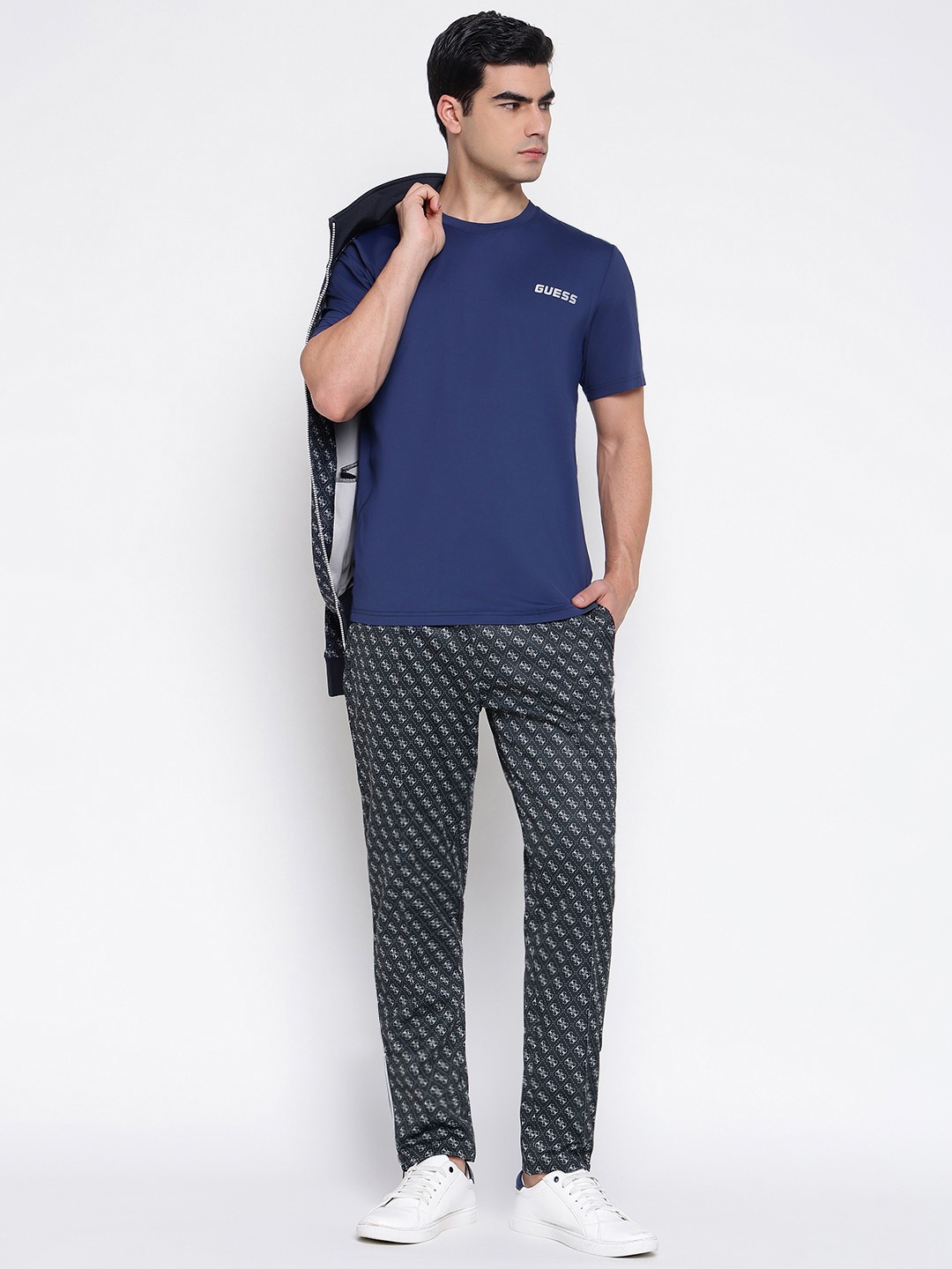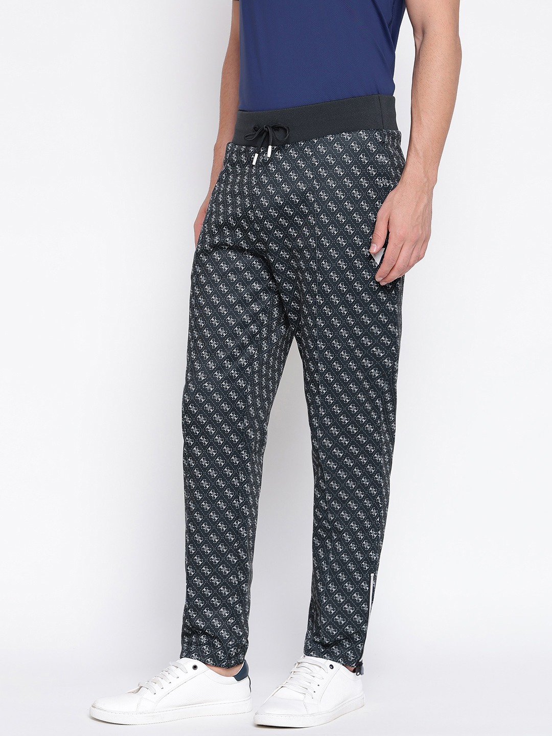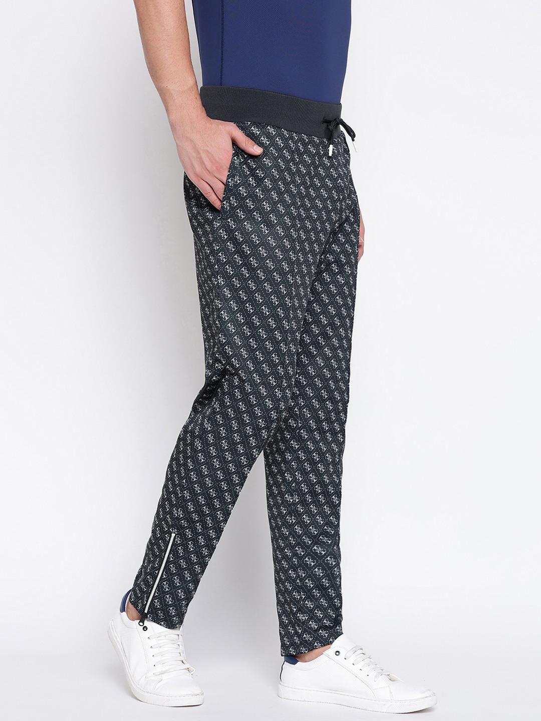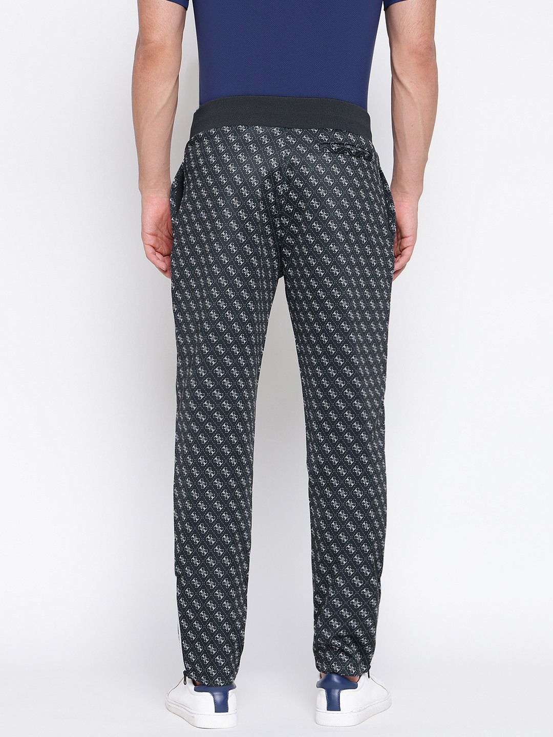 Discover the perfect blend of style and comfort with our black trackpants for men. Designed with a regular fit, these trackpants feature a striking geometric pattern that adds a modern touch to your casual wardrobe. The mid-rise waist ensures a comfortable fit, while the drawstring closure allows for easy adjustments. Crafted from high-quality polyester fabric, these trackpants offer durability and breathability, making them ideal for workouts or lounging. Elevate your everyday look with these versatile trackpants.