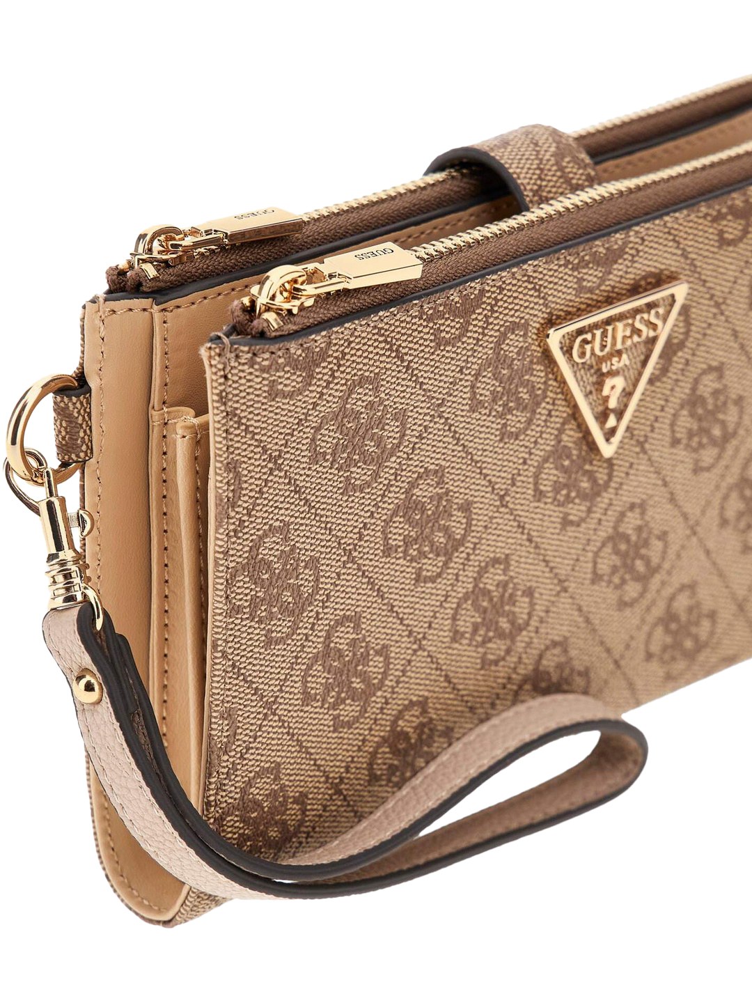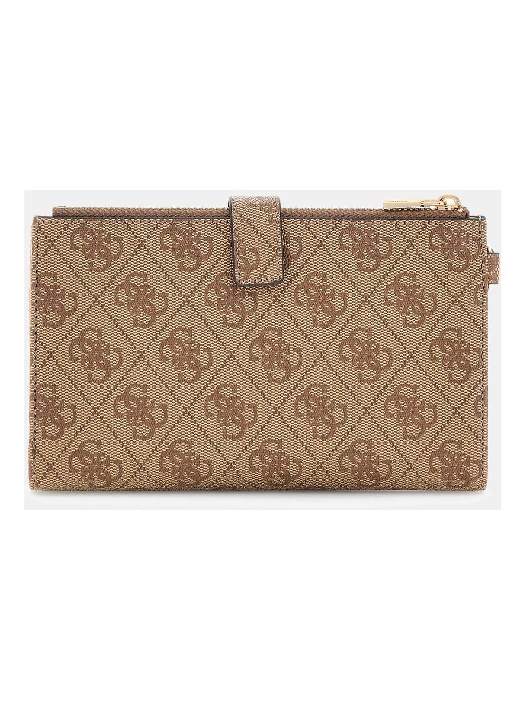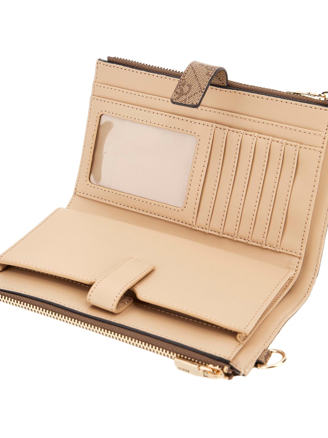 Discover elegance with our beige wallet crafted from 100% PU fabric. Featuring an embossed logo pattern, this stylish accessory offers ample space for cards and cash. Its sleek design ensures it fits perfectly in any handbag, making it an ideal choice for the modern woman seeking both functionality and fashion.
