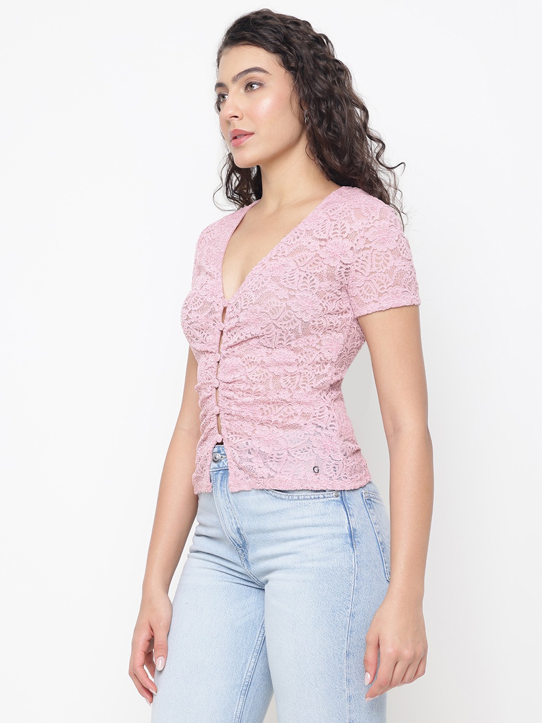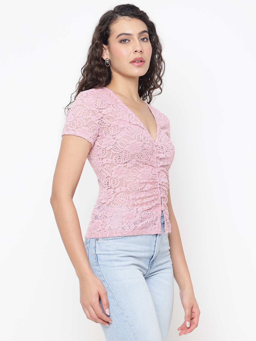 Elevate your wardrobe with this exquisite regular fit top, designed for the modern woman who appreciates elegance and comfort. Crafted from premium polyester fabric, this top features a delicate lace embroidered pattern that adds a touch of sophistication to any ensemble. The short sleeves and v-neckline offer a flattering silhouette, perfect for both casual outings and special occasions. A convenient button closure ensures ease of wear, making it a versatile addition to your collection. Embrace timeless style with this chic, must-have piece.