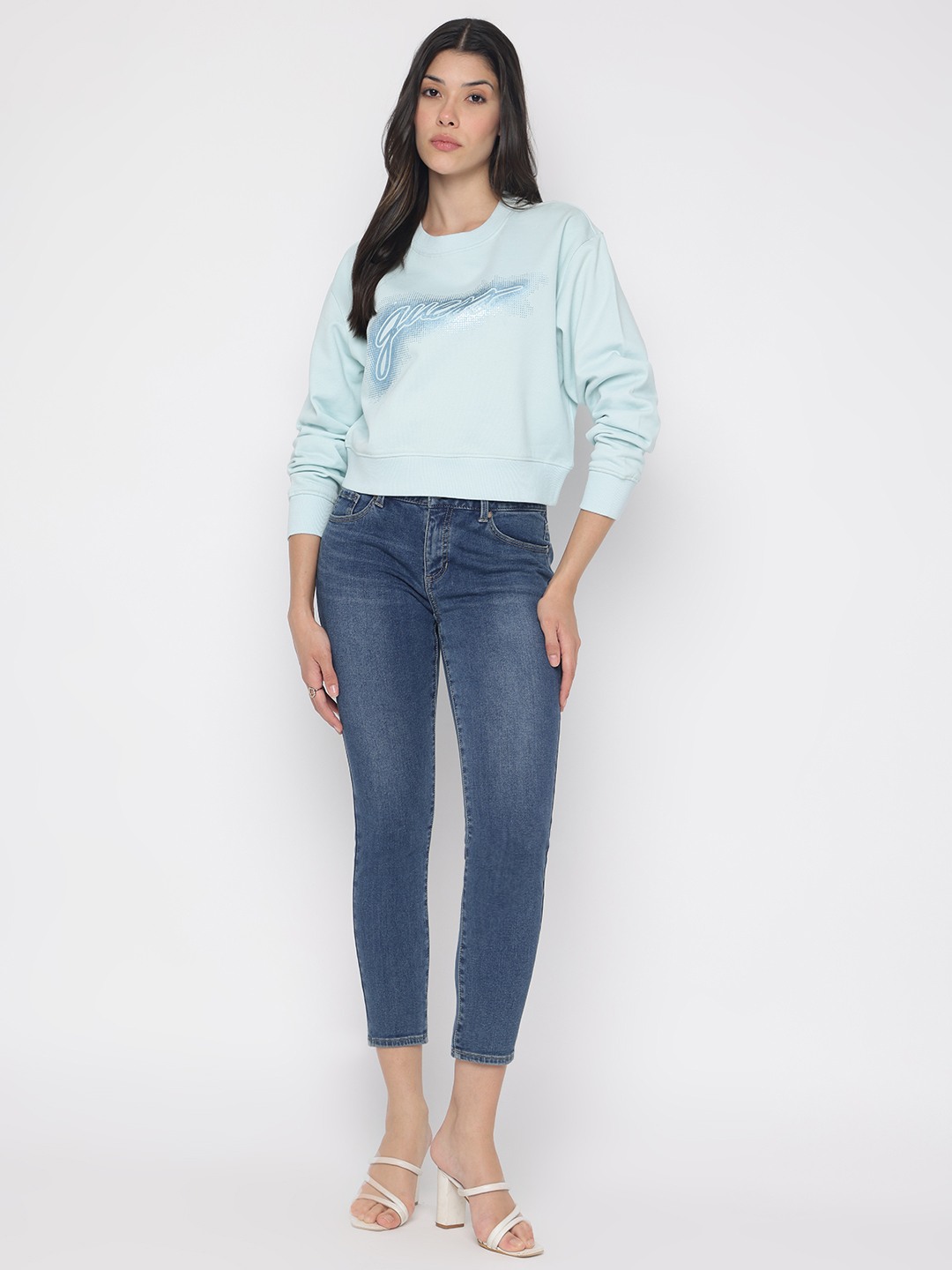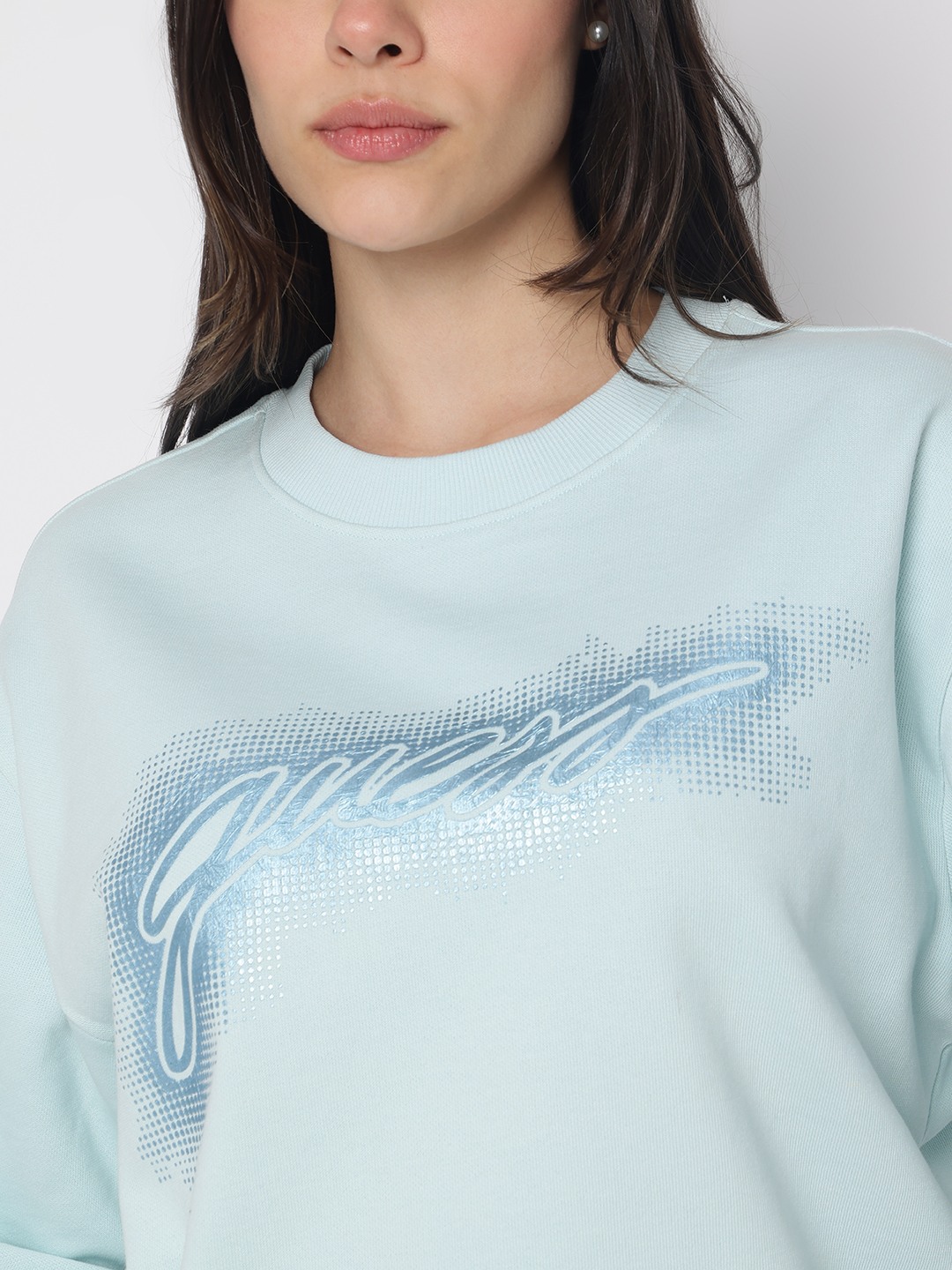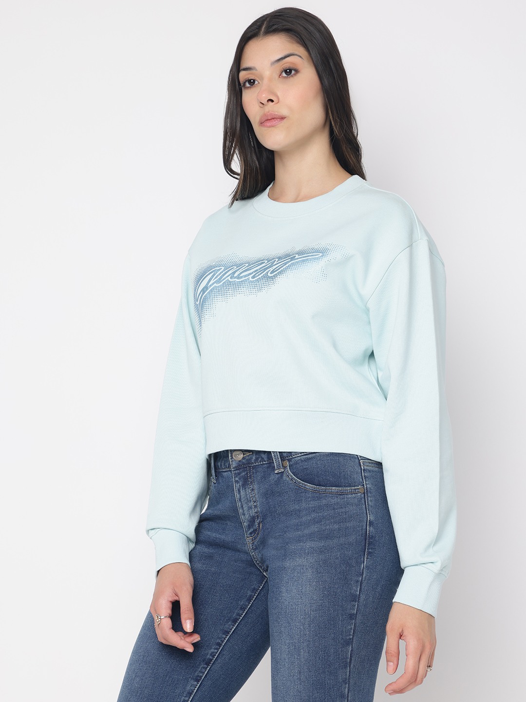 Elevate your casual wardrobe with our light blue sweatshirt, designed for the modern woman who values both comfort and style. This regular-fit piece features a chic printed pattern that adds a touch of personality to your everyday look. Crafted from 100% cotton, it promises softness and breathability, making it perfect for any season. The full sleeves and classic crew neck offer timeless appeal, while the convenient pull-on closure ensures effortless wear. Ideal for pairing with jeans or leggings, this sweatshirt is a versatile must-have.