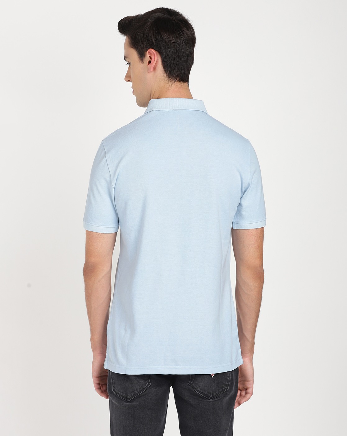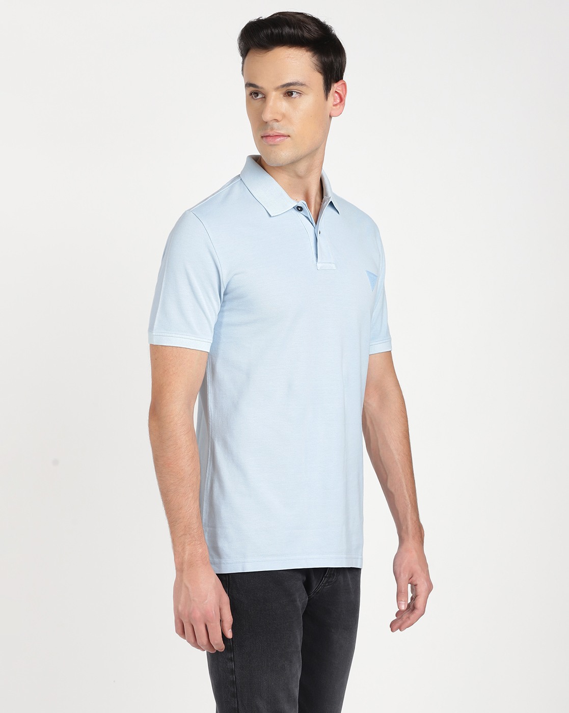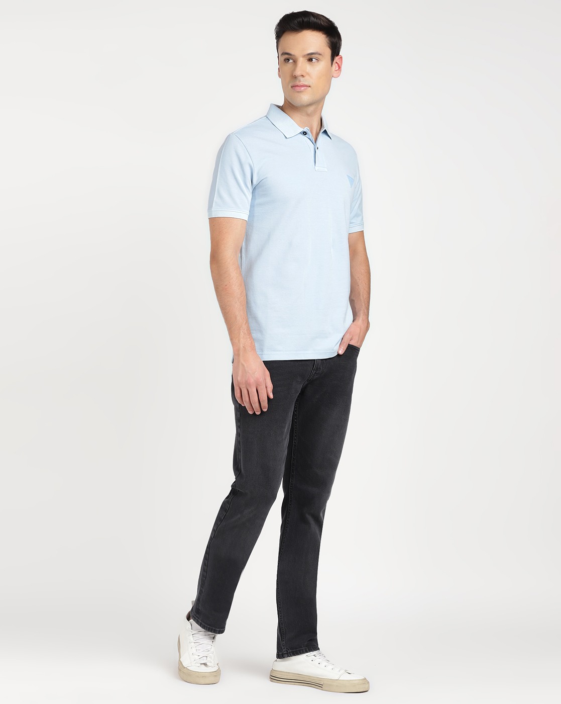 Light Blue Sky Solid Polo Neck Short Sleeves Polo T-Shirt