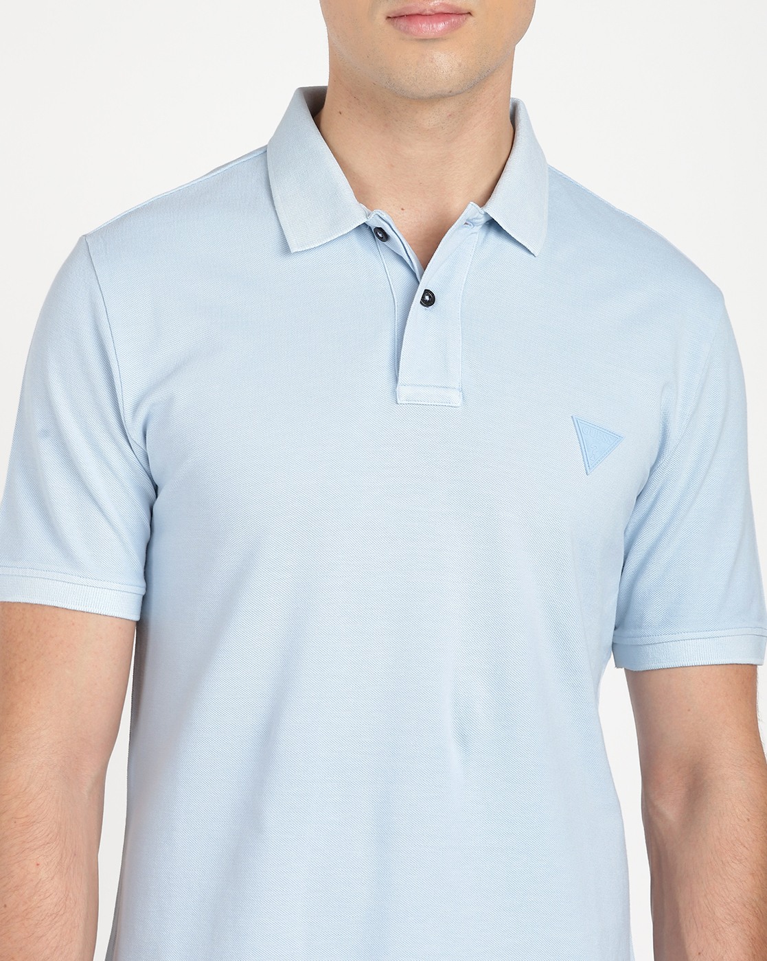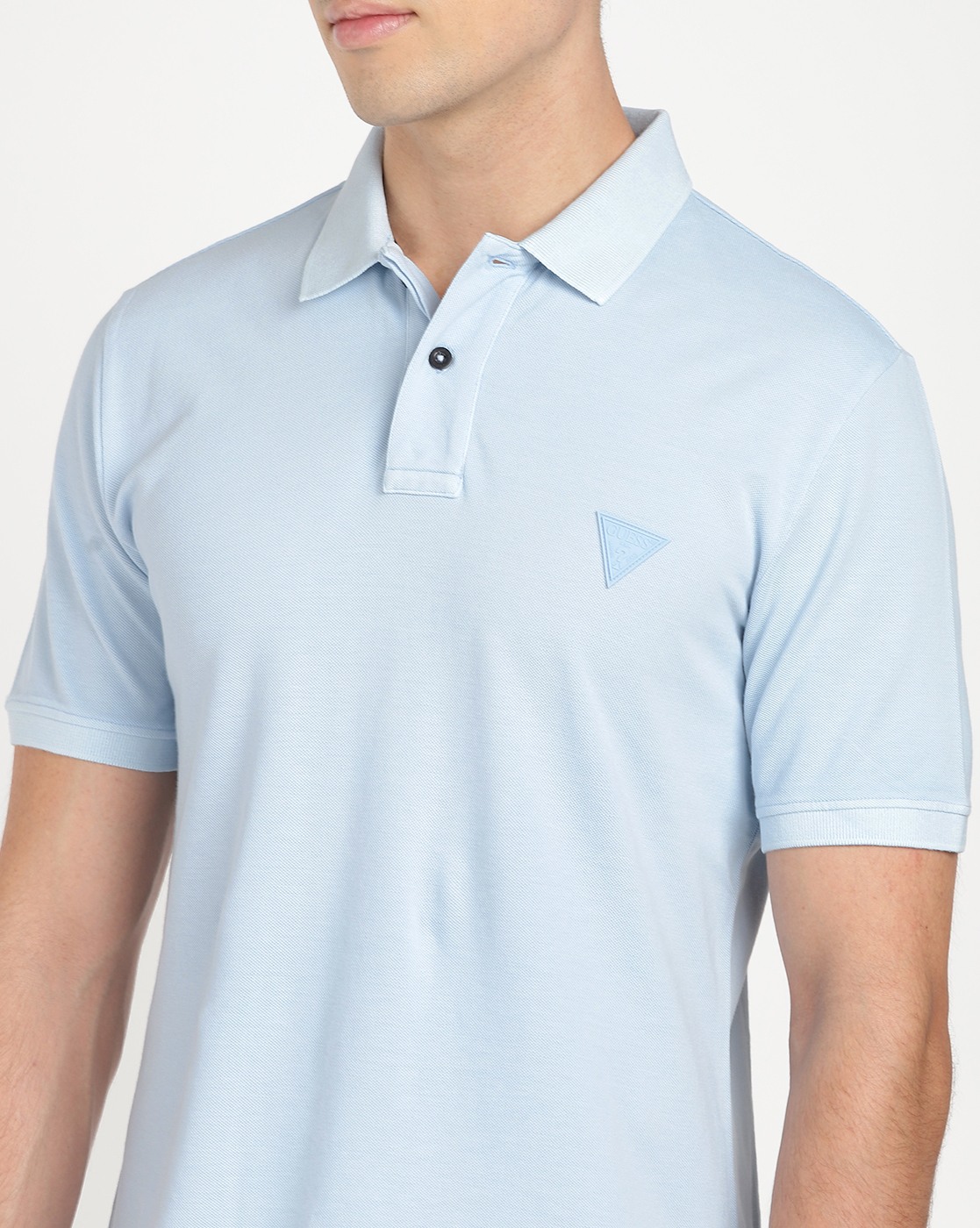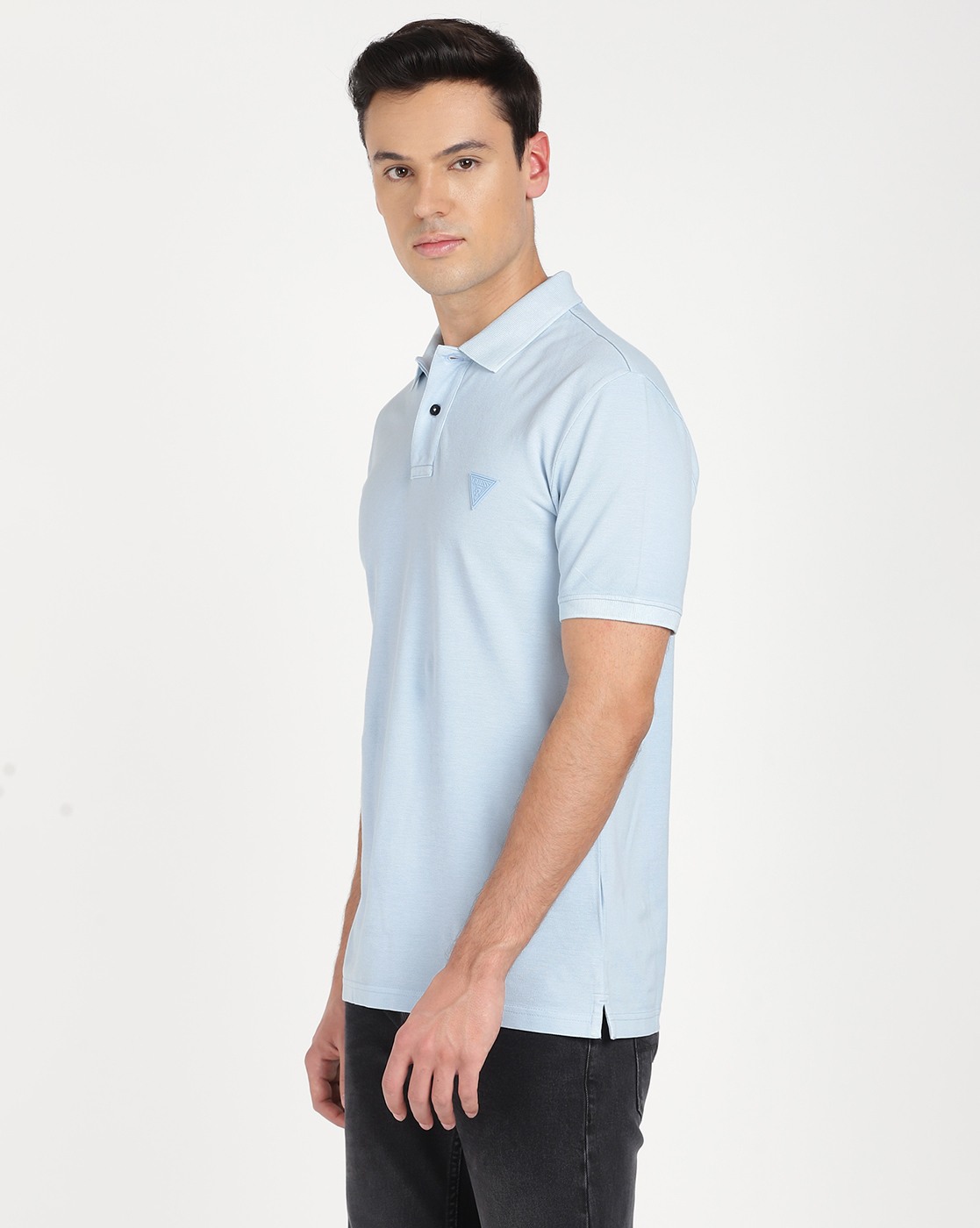 Light Blue Sky Solid Polo Neck Short Sleeves Polo T-Shirt