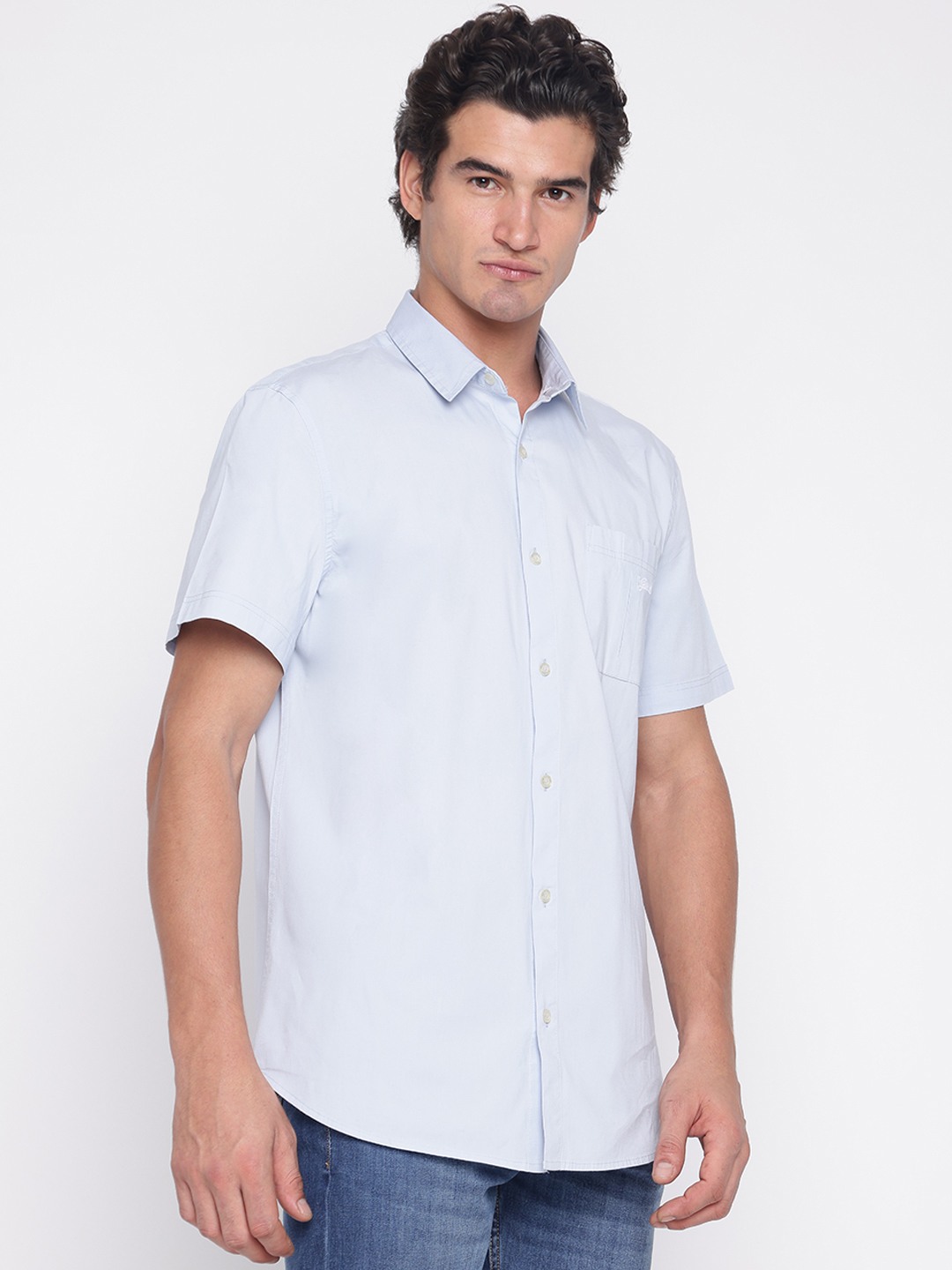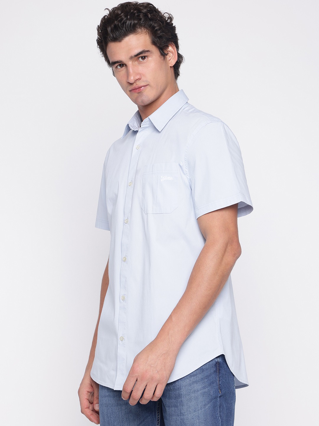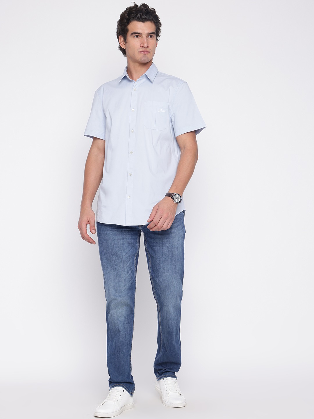 Elevate your wardrobe with our light blue shirt, designed for the modern man who values both style and comfort. This regular fit shirt features a solid pattern that effortlessly complements any ensemble. Crafted from a premium blend of 97% cotton and 3% elastane, it offers a soft touch with just the right amount of stretch for all-day comfort. The short sleeves and spread collar add a touch of sophistication, while the button closure ensures a classic finish. Perfect for both casual outings and formal occasions, this shirt is a versatile must-have.