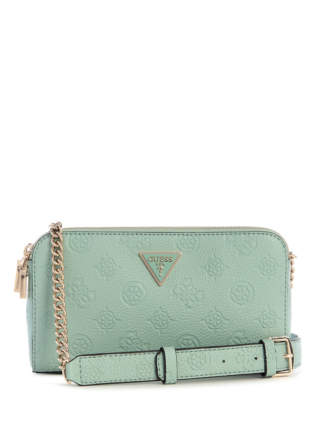 Light Sage Logo Textured Zipper Cresidia Status Crossbody Bag