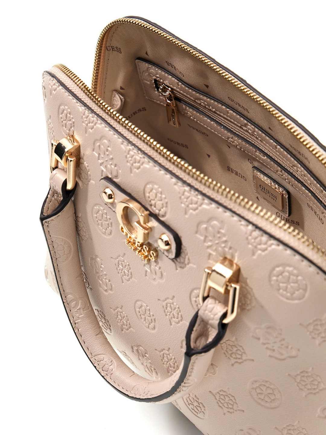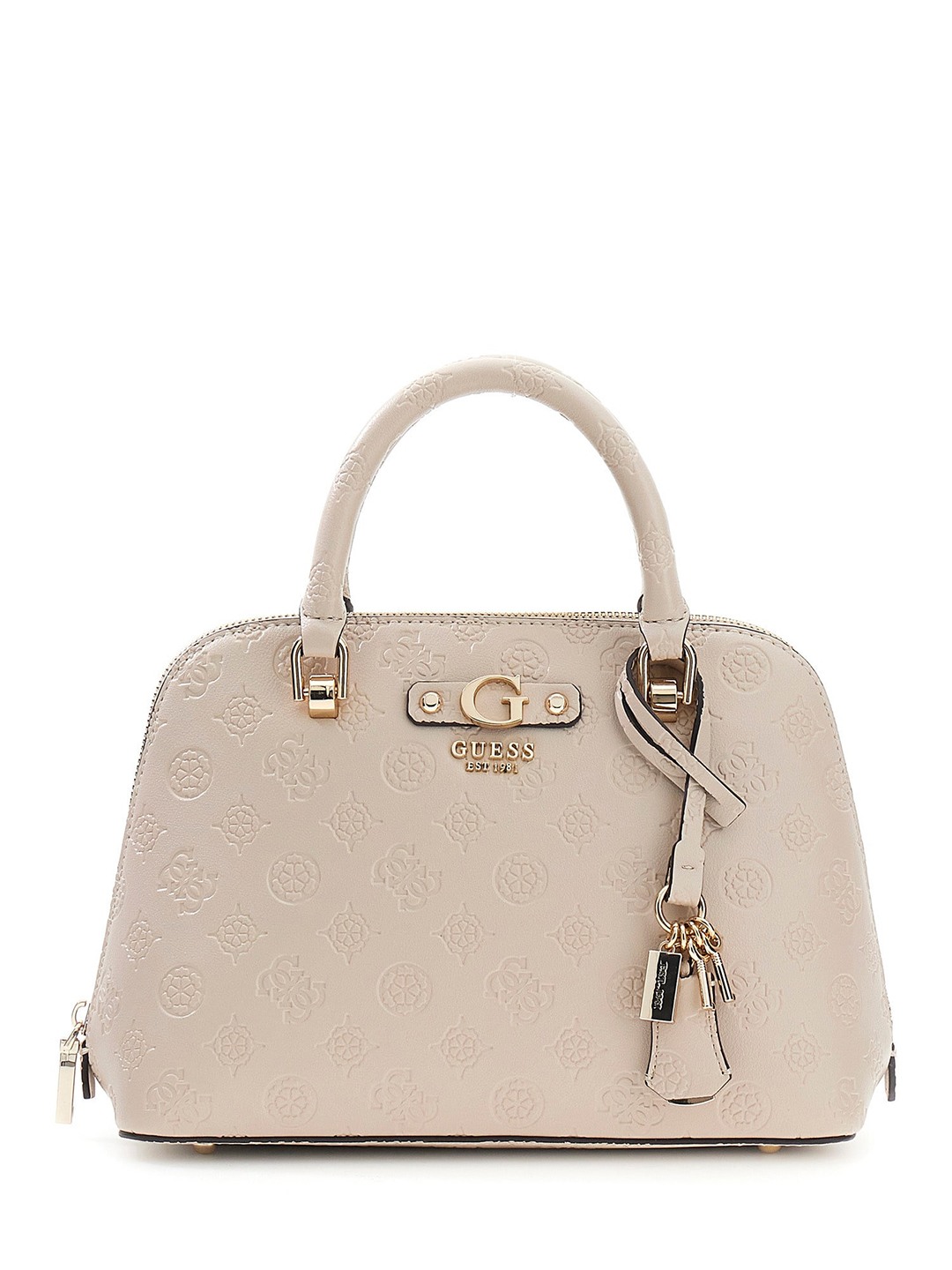Light Taupe Logo Embossed Zipper Dita Dome Satchel Bag