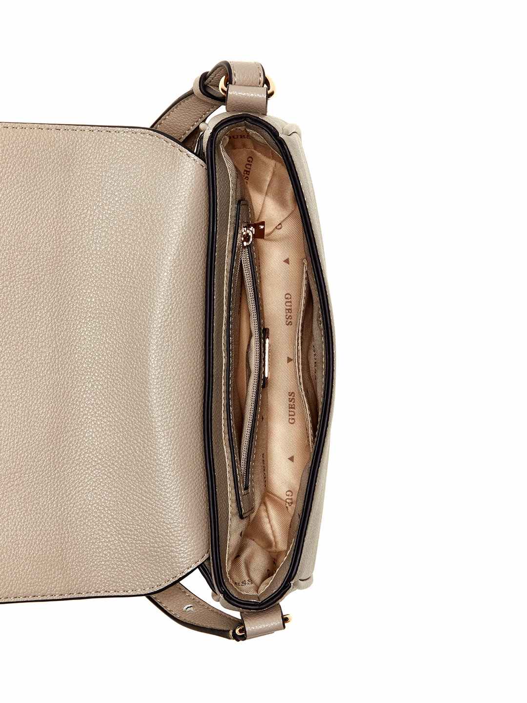 Light Taupe Textured Magnetic Snap Isola Crossbody Bag