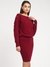 Maroon Solid Boat Neck Dress