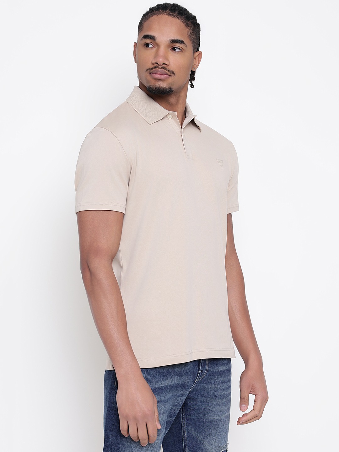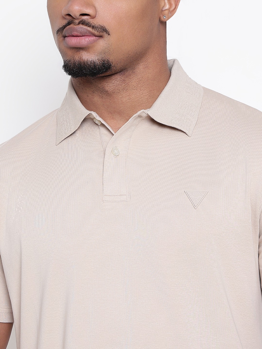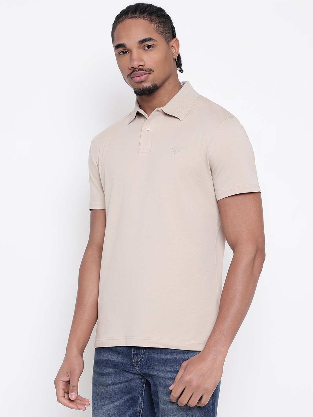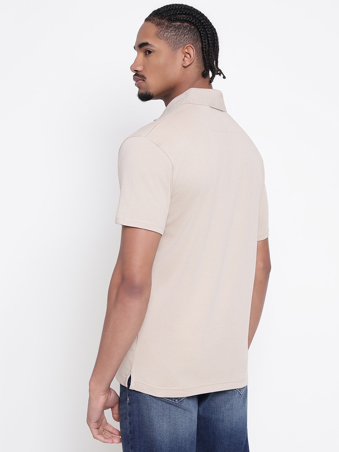 Men Beige Solid Polo Collar T-shirt