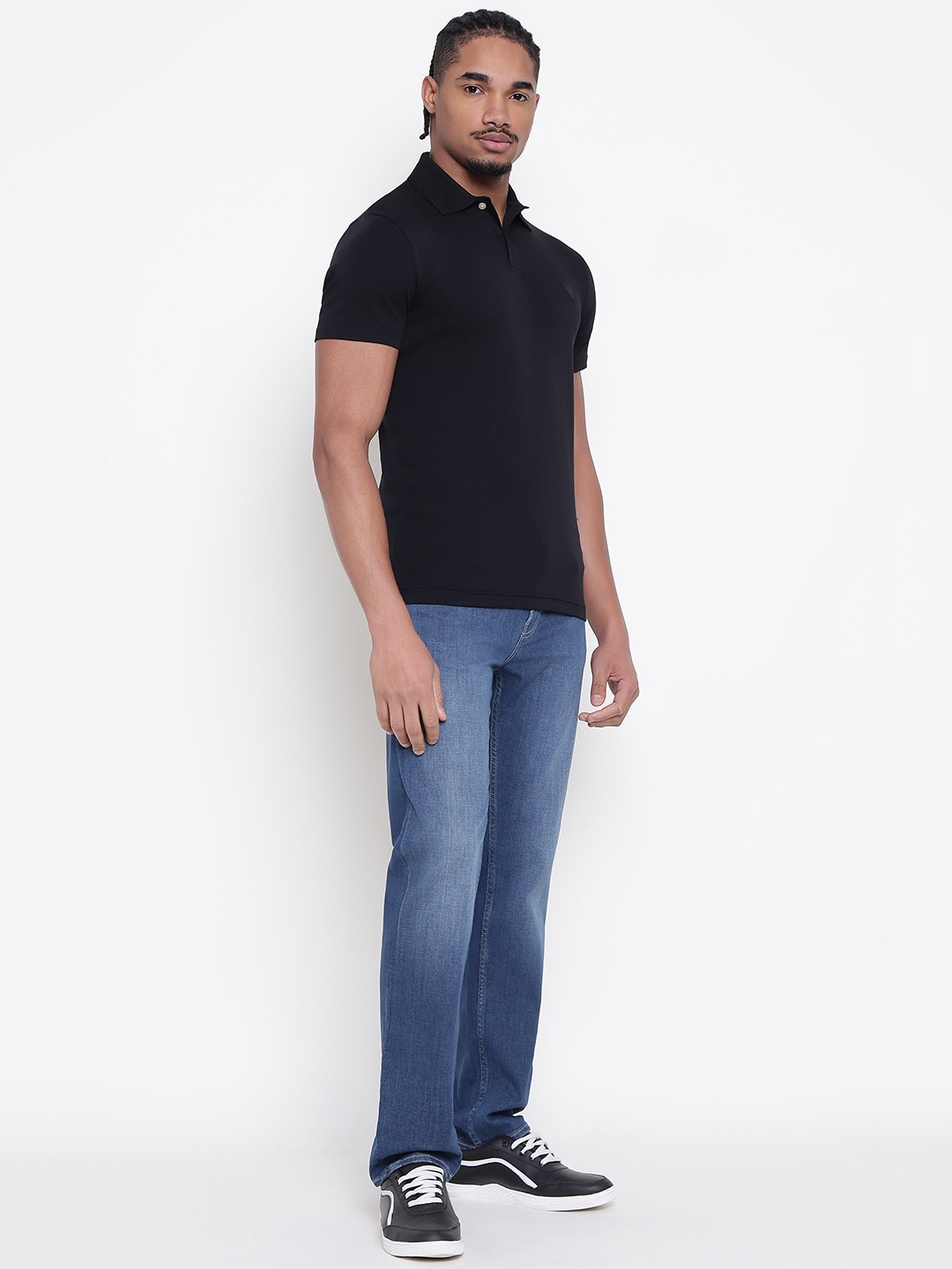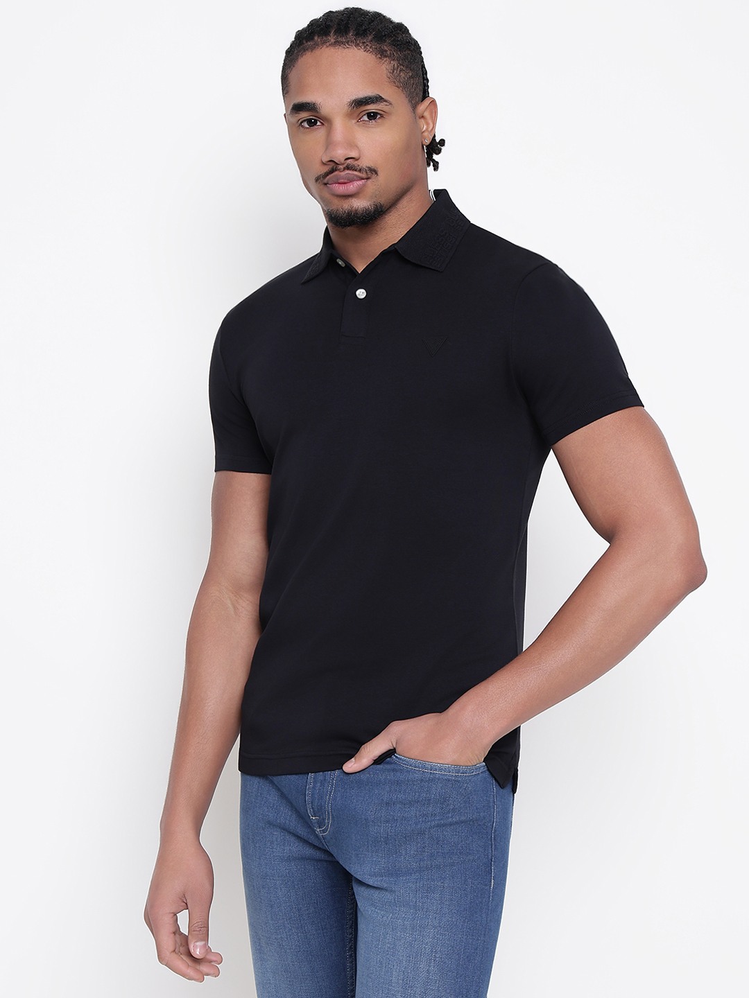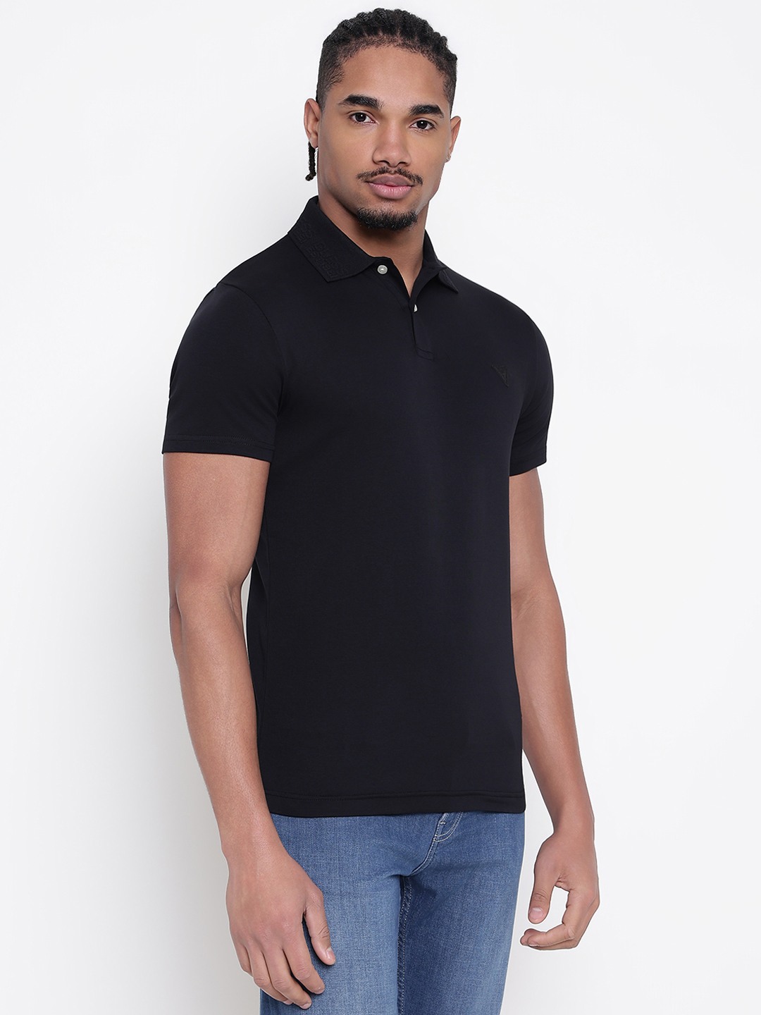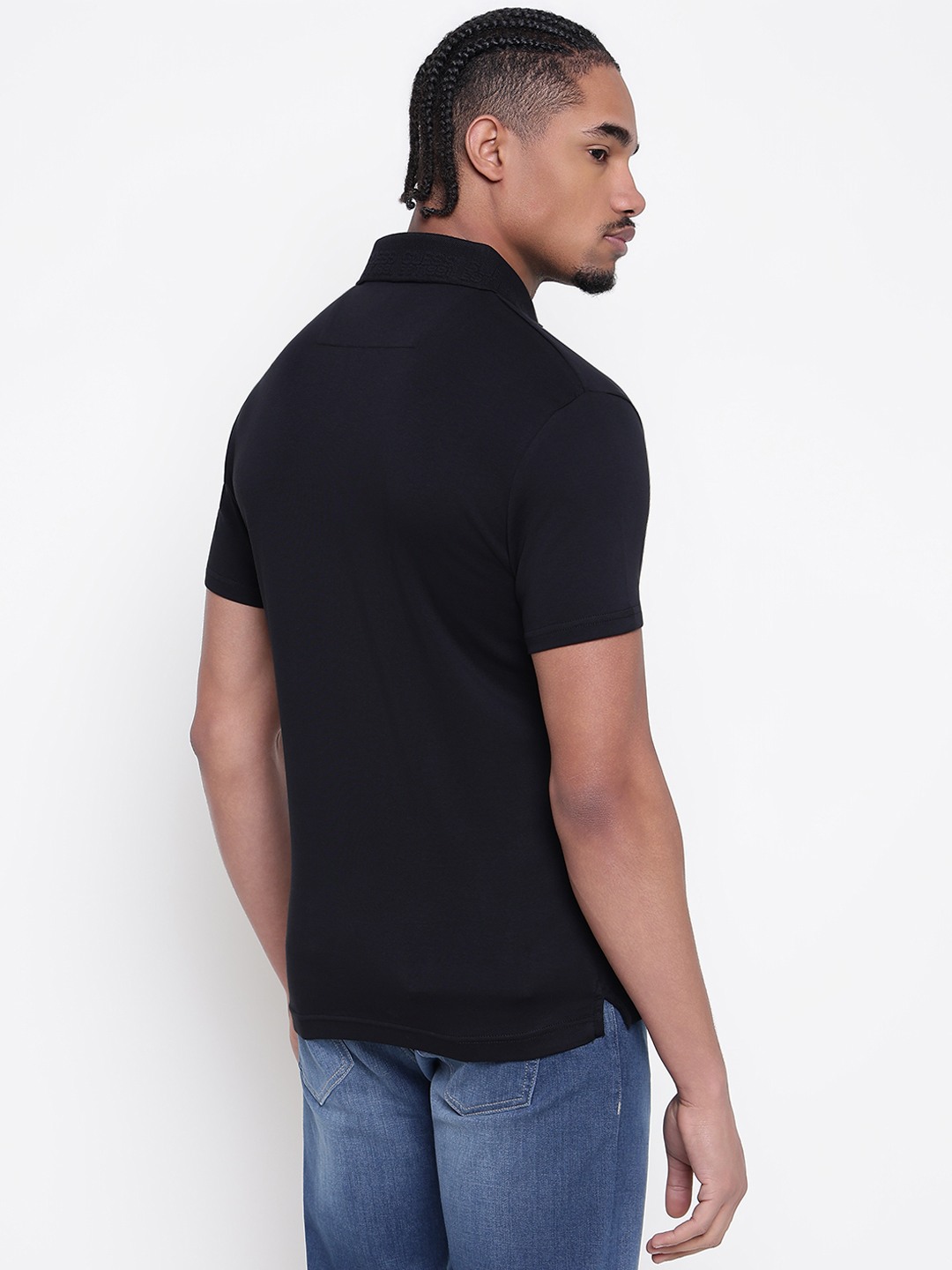 Men Black Solid Polo Collar T-shirt