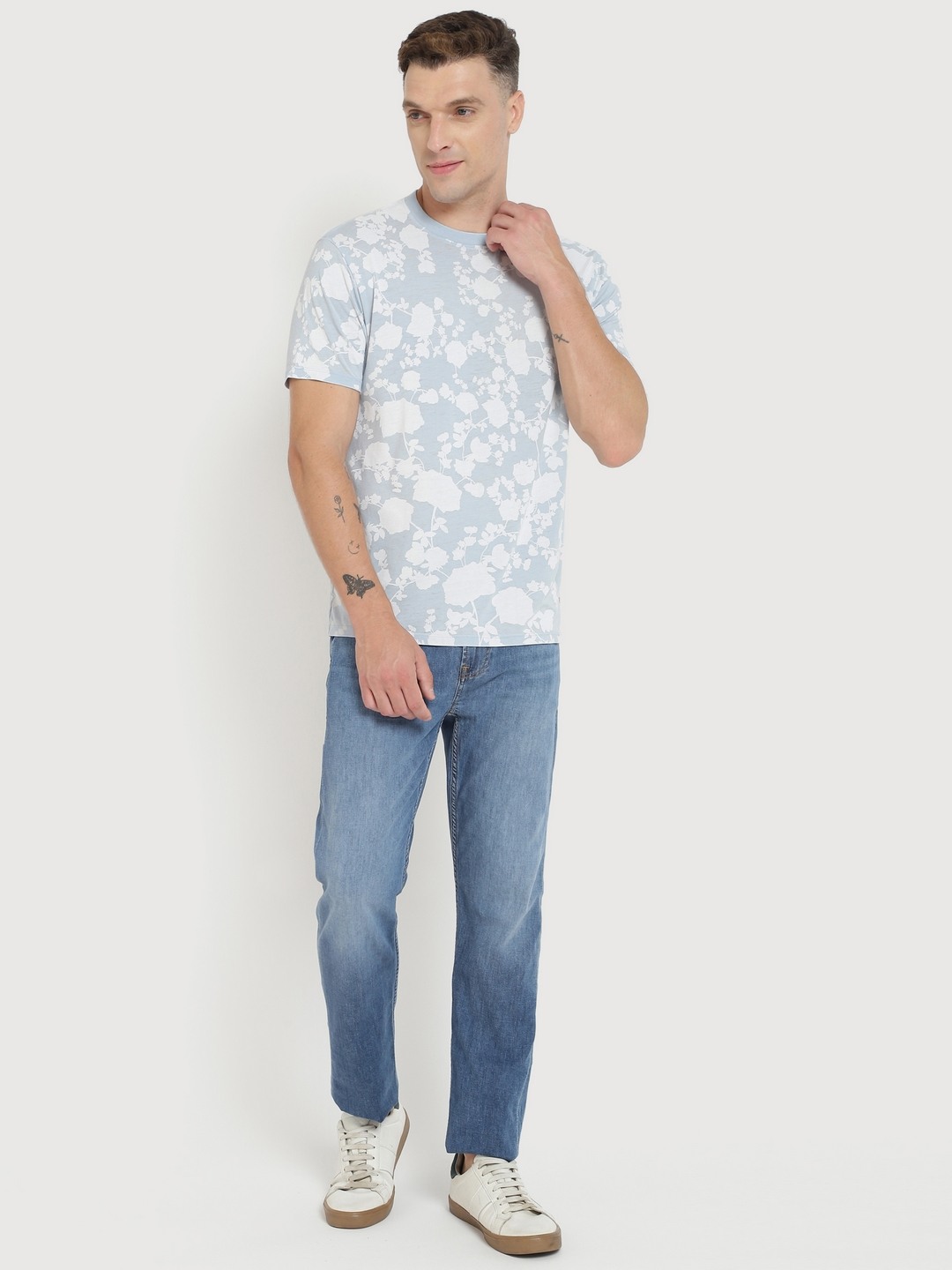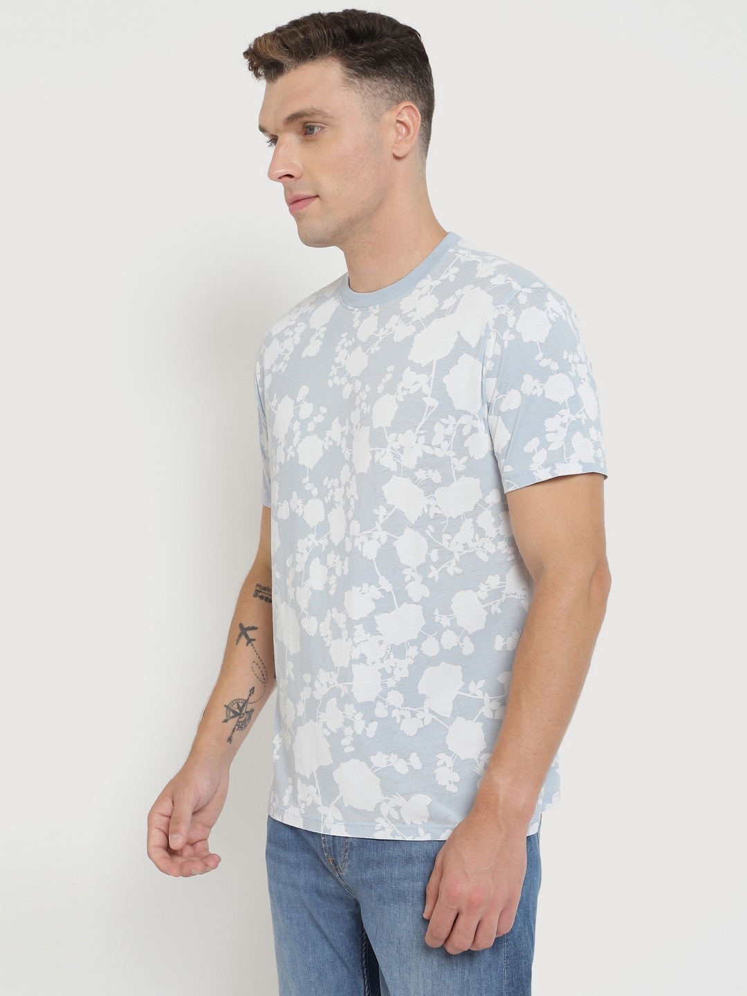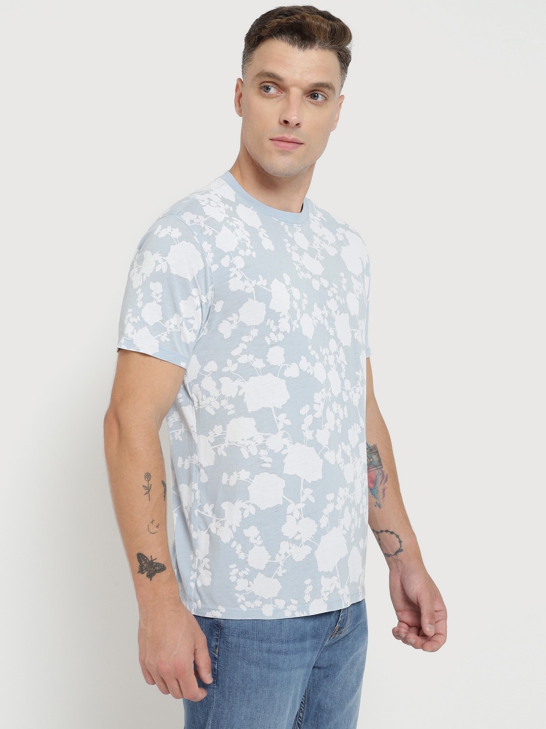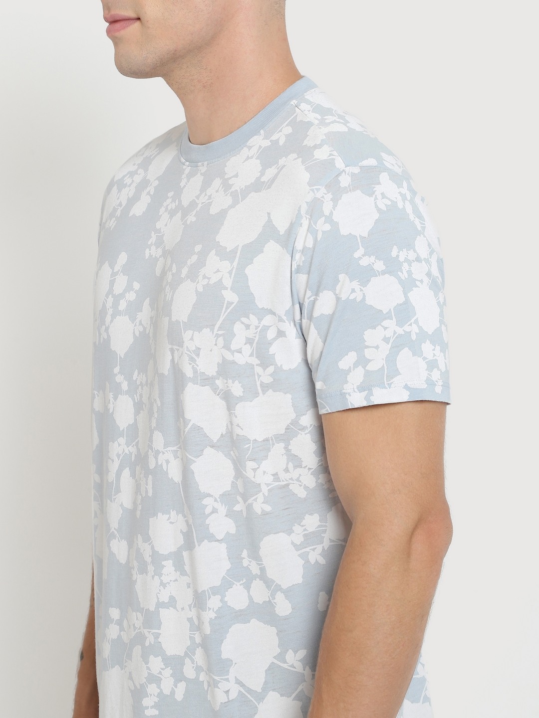 Men Blue Printed Round Neck Short Sleeves T-shirt