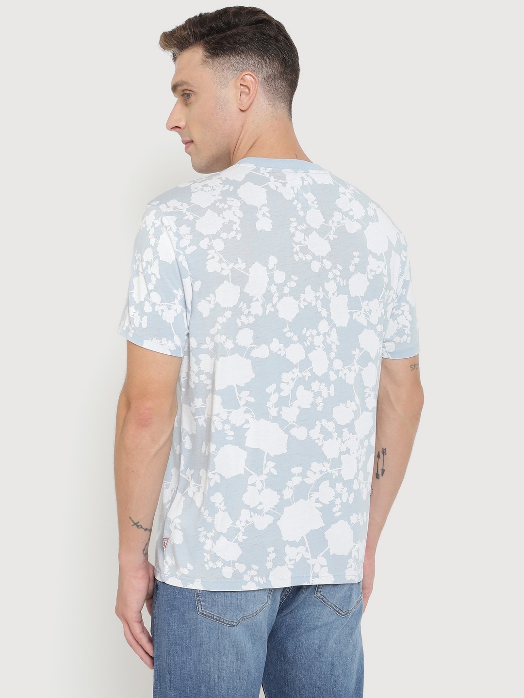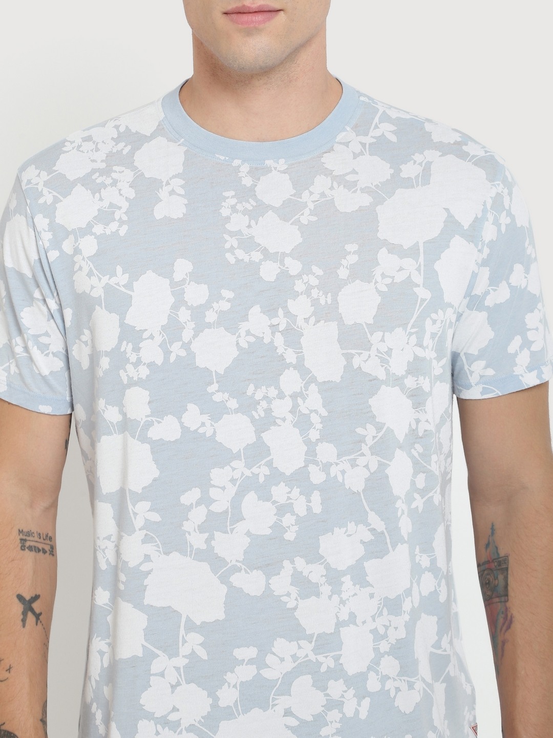 • Guess Men Blue Printed Round Neck Short Sleeves T-shirt