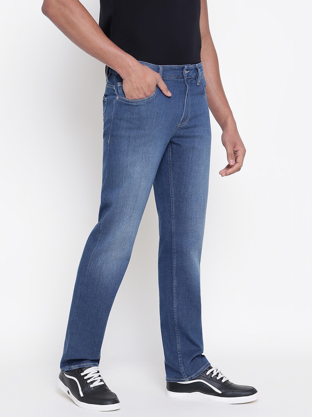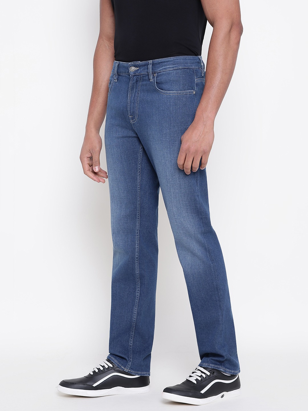 Men Blue Solid Regular Fit Jeans