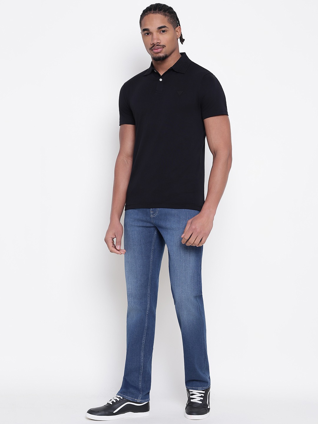 • Discover the quintessential blend of style and comfort with our men's blue jeans, crafted from premium denim. These regular-fit jeans offer a timeless silhouette that effortlessly complements any wardrobe. The solid blue hue exudes classic charm, making them versatile for both casual outings and semi-formal occasions. Designed for the modern man, the fabric ensures durability while providing a soft touch against the skin. Elevate your everyday look with these essential jeans, where tradition meets contemporary flair.