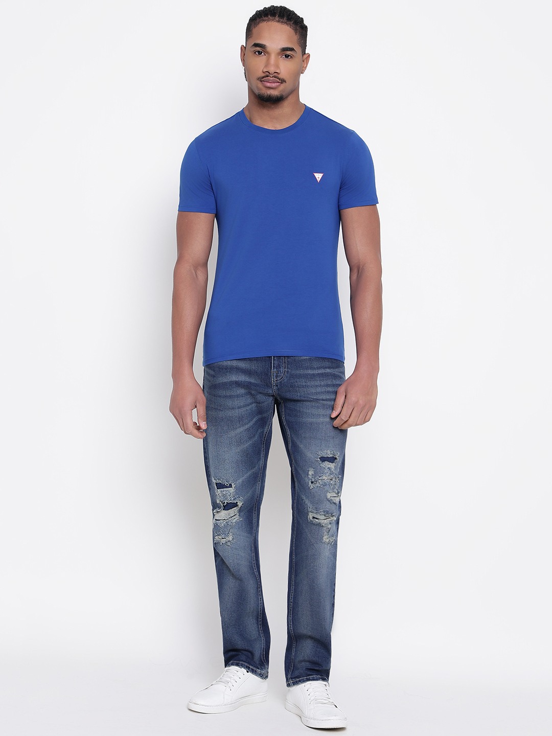 Discover the quintessential blend of style and comfort with our men's blue jeans, crafted from premium denim. These regular-fit jeans offer a timeless silhouette that effortlessly complements any wardrobe. The solid blue hue exudes classic charm, making them versatile for both casual outings and semi-formal occasions. Designed for the modern man, the fabric ensures durability while providing a soft touch against the skin. Elevate your everyday look with these essential jeans, where tradition meets contemporary flair.