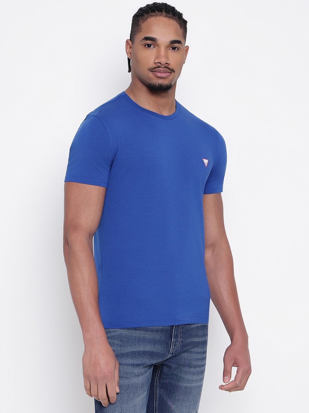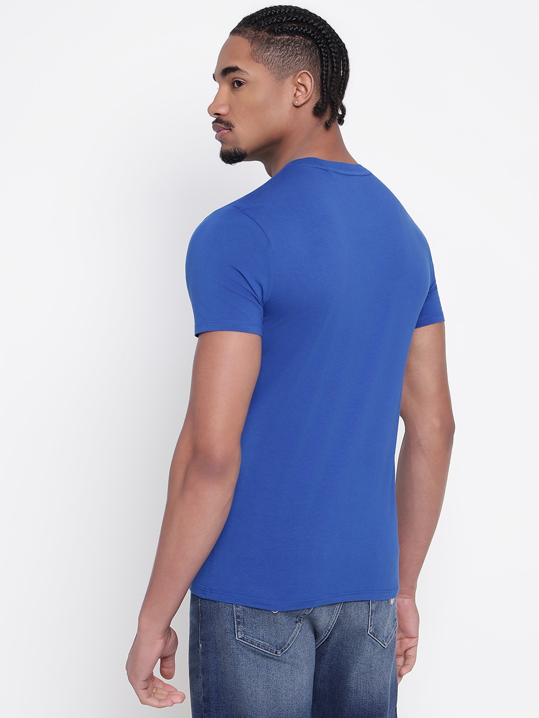 Men Blue Solid Round Neck T-shirt