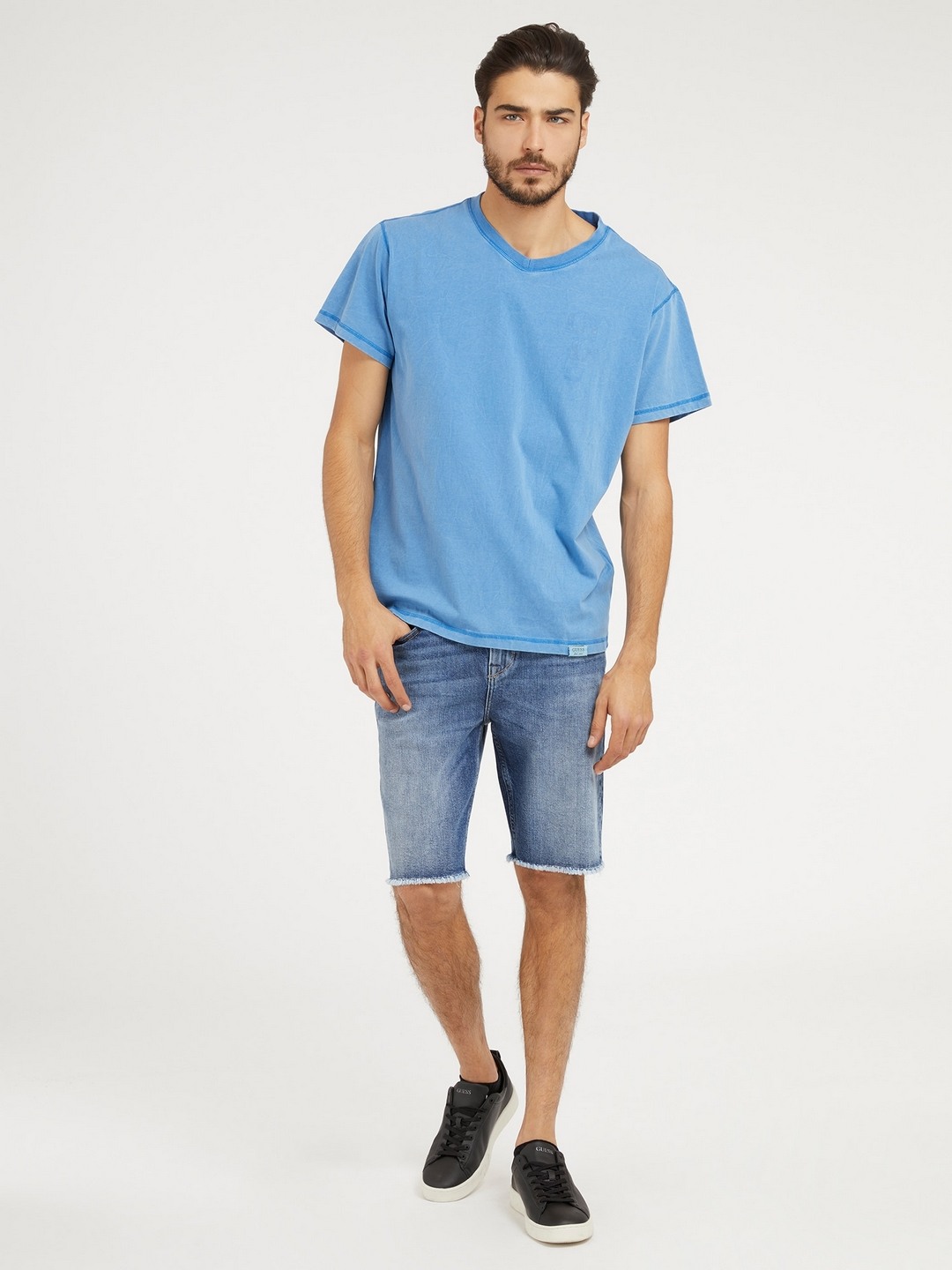 Experience the perfect blend of style and comfort with our men's slim-fit blue shorts. Crafted from premium fabric, these shorts offer a sleek silhouette that effortlessly complements your physique. The solid pattern exudes a timeless appeal, making them a versatile addition to any wardrobe. Whether you're heading to a casual outing or a relaxed day at the beach, these shorts provide the ideal balance of sophistication and ease, ensuring you stay cool and confident all day long.